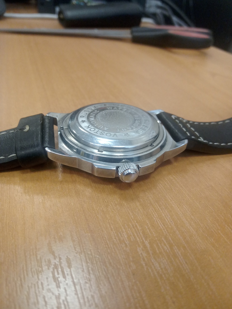И насчет задней крышки: Механизм лежит заподлицо в корпусе. Но крышка зачем-то выше советской на 2 мм. Хотел заменить на советскую, так они еще и диаметр увеличили примерно на миллиметр. Это что-за изврат, зачем искусственно делать часы толще? Всю историю человечества было стремление к унификации и экономии, а тут такой выверт...