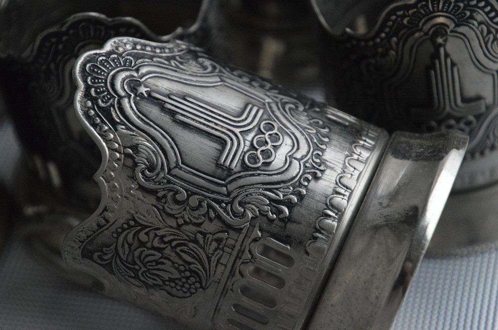 Набор подстаканников СССР "Олимпиада-80", мельхиор, 6 штук.