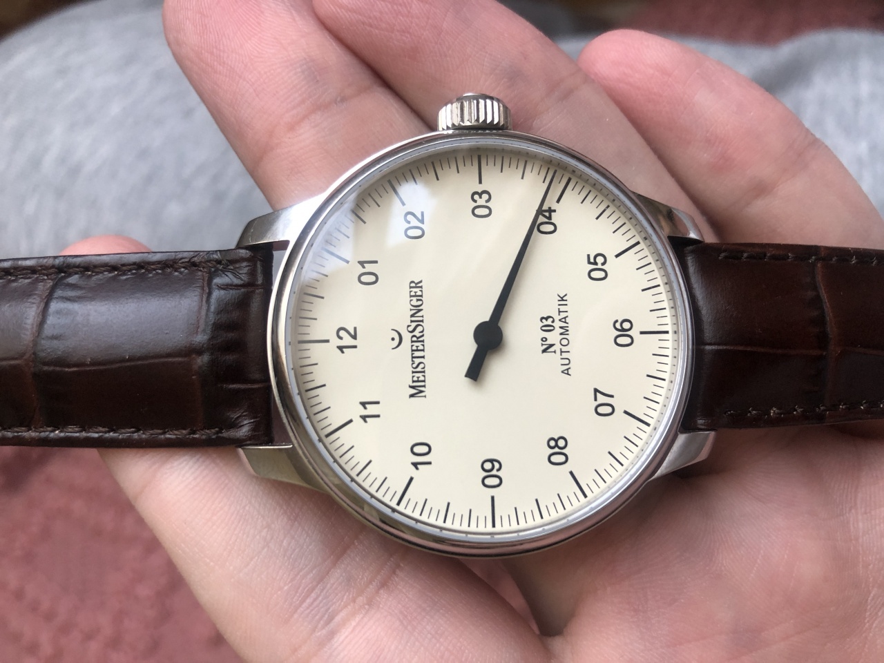 Наручные часы MeisterSinger - комбинация классического часового механизма и оригинального дизайна. А все начиналось с часов, у которых была лишь одна стрелка, показывающая только час. Образец конструкции механизма MeisterSinger был создан в подражание солнечным часам и первым механическим часам, которые имели только одну стрелку. Это подразумевало целую философию созидания Времени. Для большинства людей постоянная погоня за часовой и минутной стрелками абсолютно естественна. «Нормальные» часы с двумя или тремя стрелками на циферблате отмеряют каждую секунду и минуту. Однако точка отсчёта, в которой человек начинает осознавать Время как явление, – неизвестна. До 17 века наличие одной стрелки на циферблате было так же естественно, как две или три стрелки на циферблате сегодня.