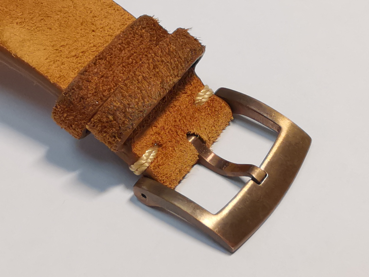 Ремешок кожаный с текстурой замши, имеет обработку по краю и пропитку от влаги, практически не намокает.