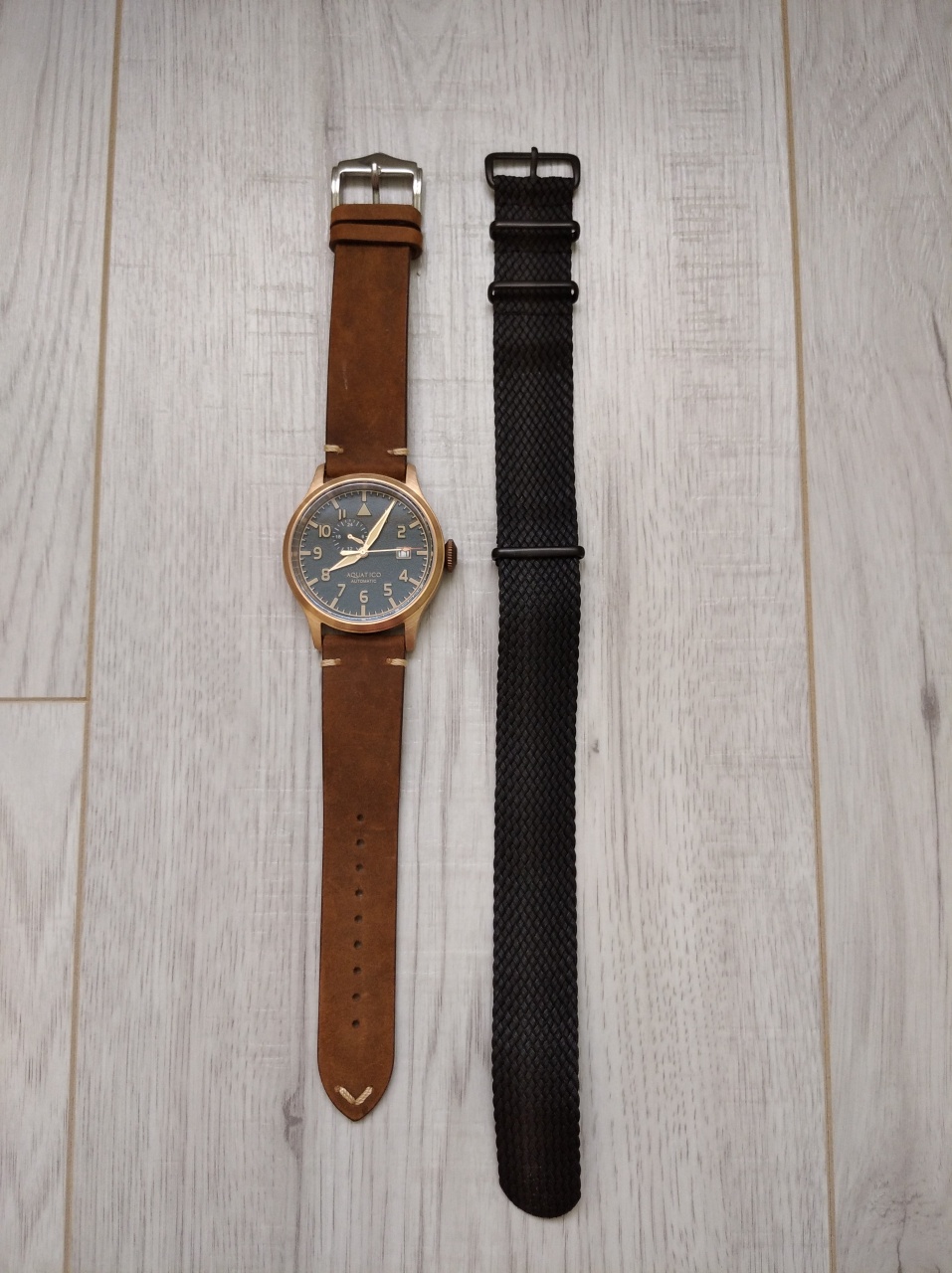 Ремень: кожа винтажного типа + черный нато из перлона.
