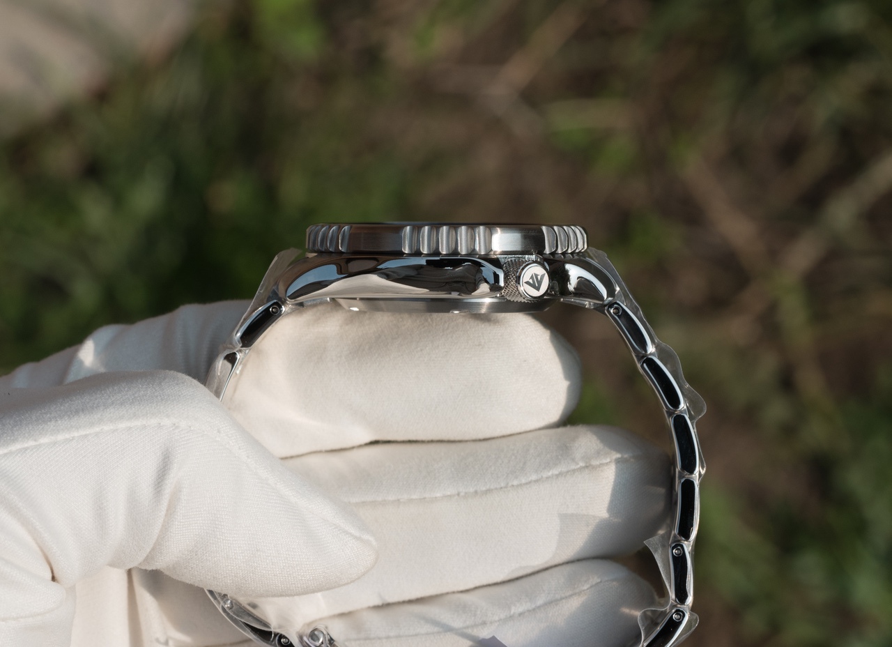 Завинчивающаяся заводная головка на левой стороне, плюс смещенная для удобства на 8 часов