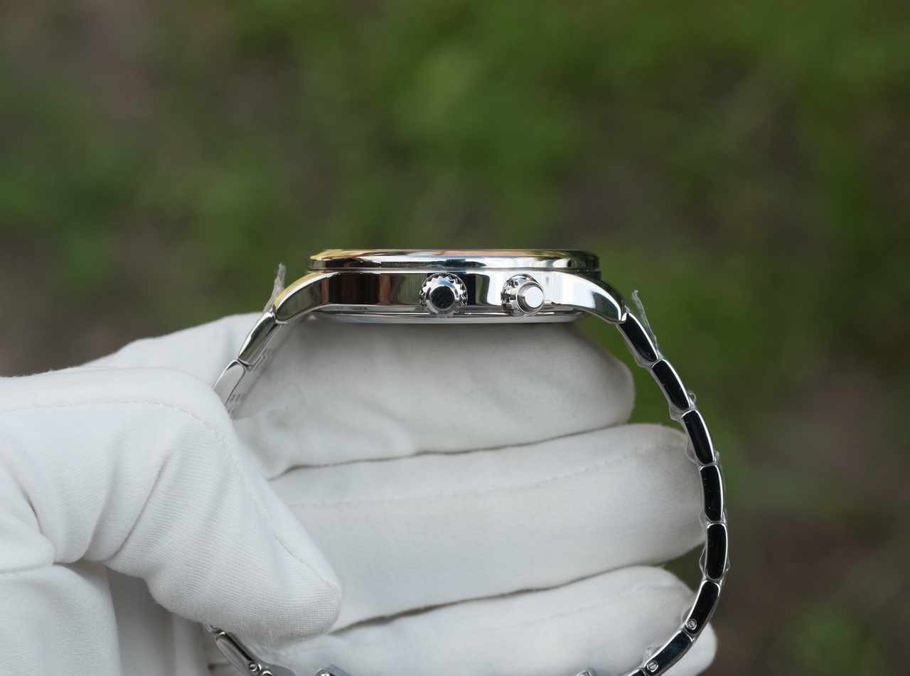 Стальной корпус с качественной отделкой, кнопка настройки календаря завинчивается для защиты от самопроизвольного нажатия