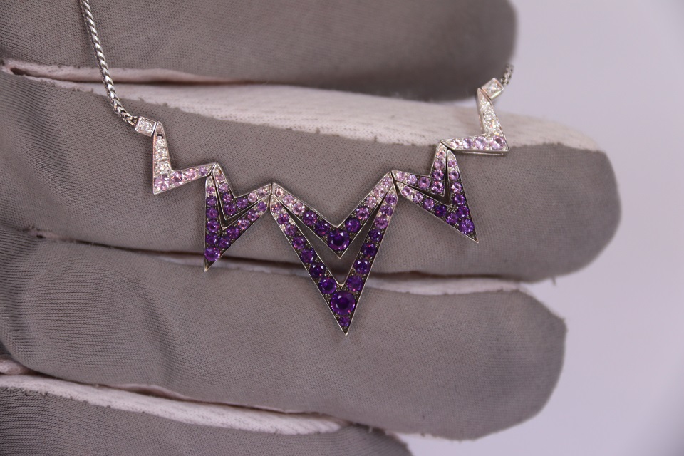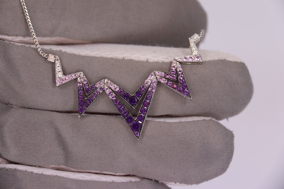Белое золото 18к / 750 пробы, пурпурные сапфиры, аметисты.