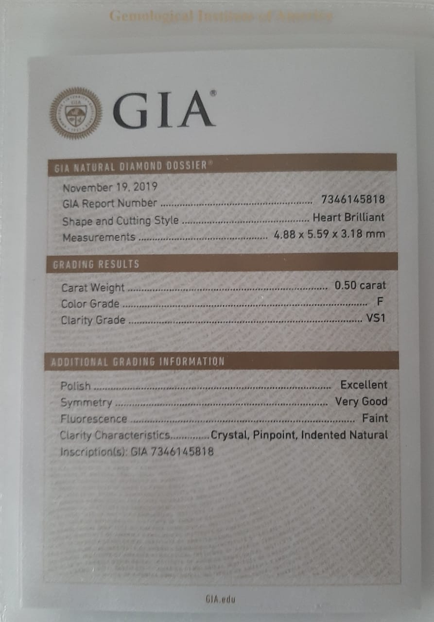 Кулон с бриллиантом огранки "Сердце" 0,50 карат (сертификат GIA)!