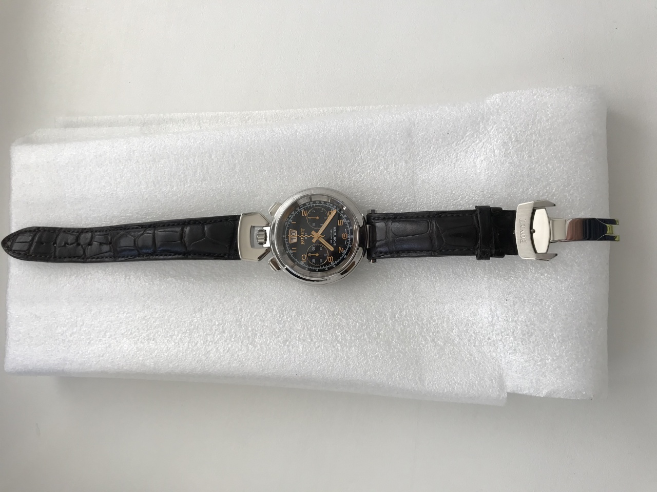 Вашему вниманию предлагается эксклюзивные часы Bovet Sportster Chronograph. Часы которые заставят обратить на себя, находятся в идеальном состояние, отполированы и ждут своего покупателя.