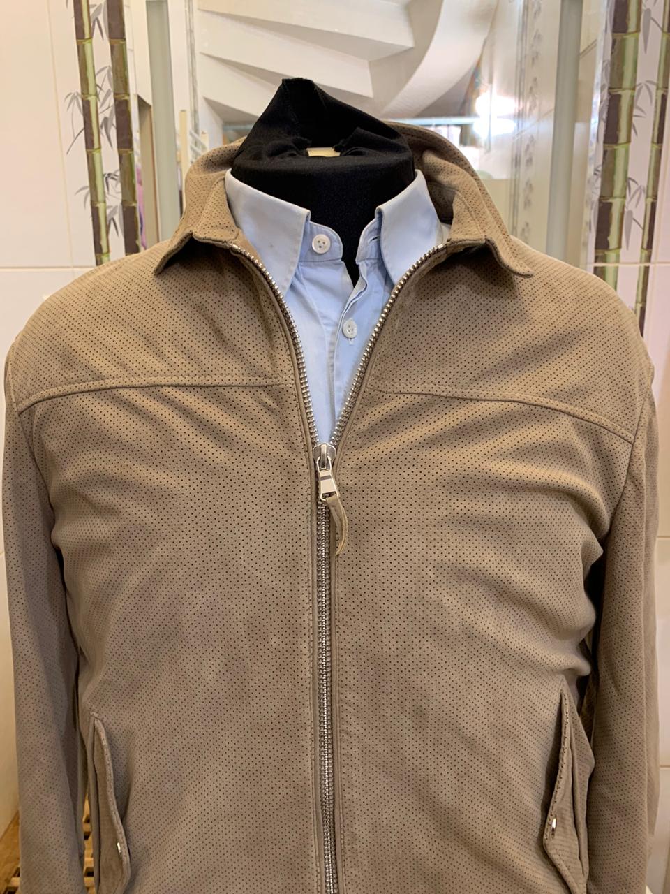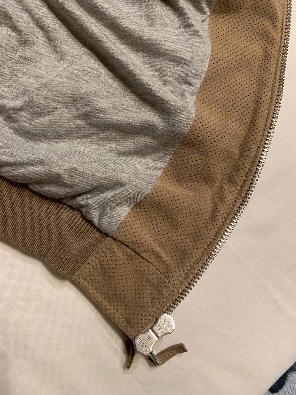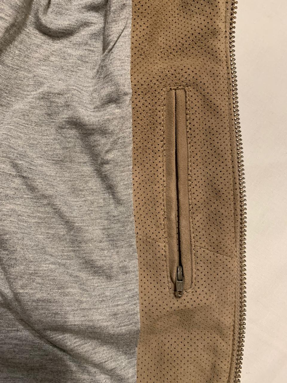 Продается новая элегантная мужская замшевая куртка-бомбер итальянского премиум бренда ELEVENTY превосходного исполнения, бежевого цвета , отложной воротник, застегивается на молнию с двойным ходом и логотипом бренда, наружные боковые карманы с клапанами на кнопках, внутренние карманы на молнии, трикотажные: манжеты рукавов, низ куртки , внутри подкладка из трикотажного полотна, состав ткани: 100% перфорированная замша, все бирки прилагаются, гарантированный 100% оригинал, размер 54(IT), производство Италия.