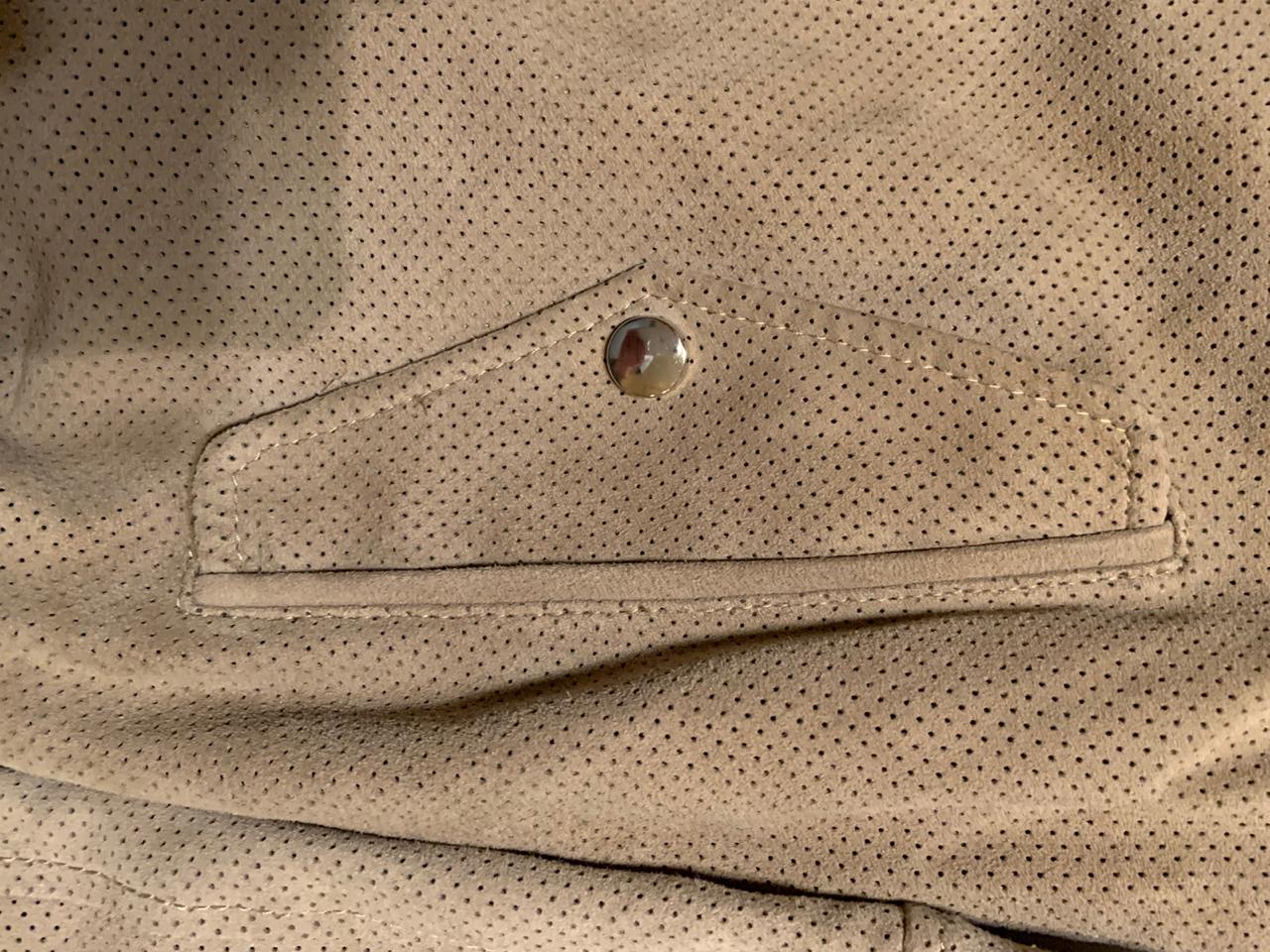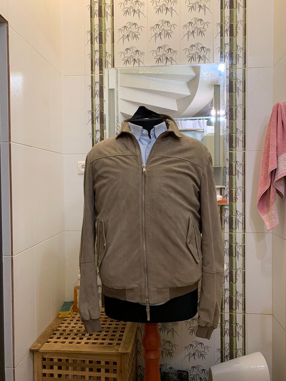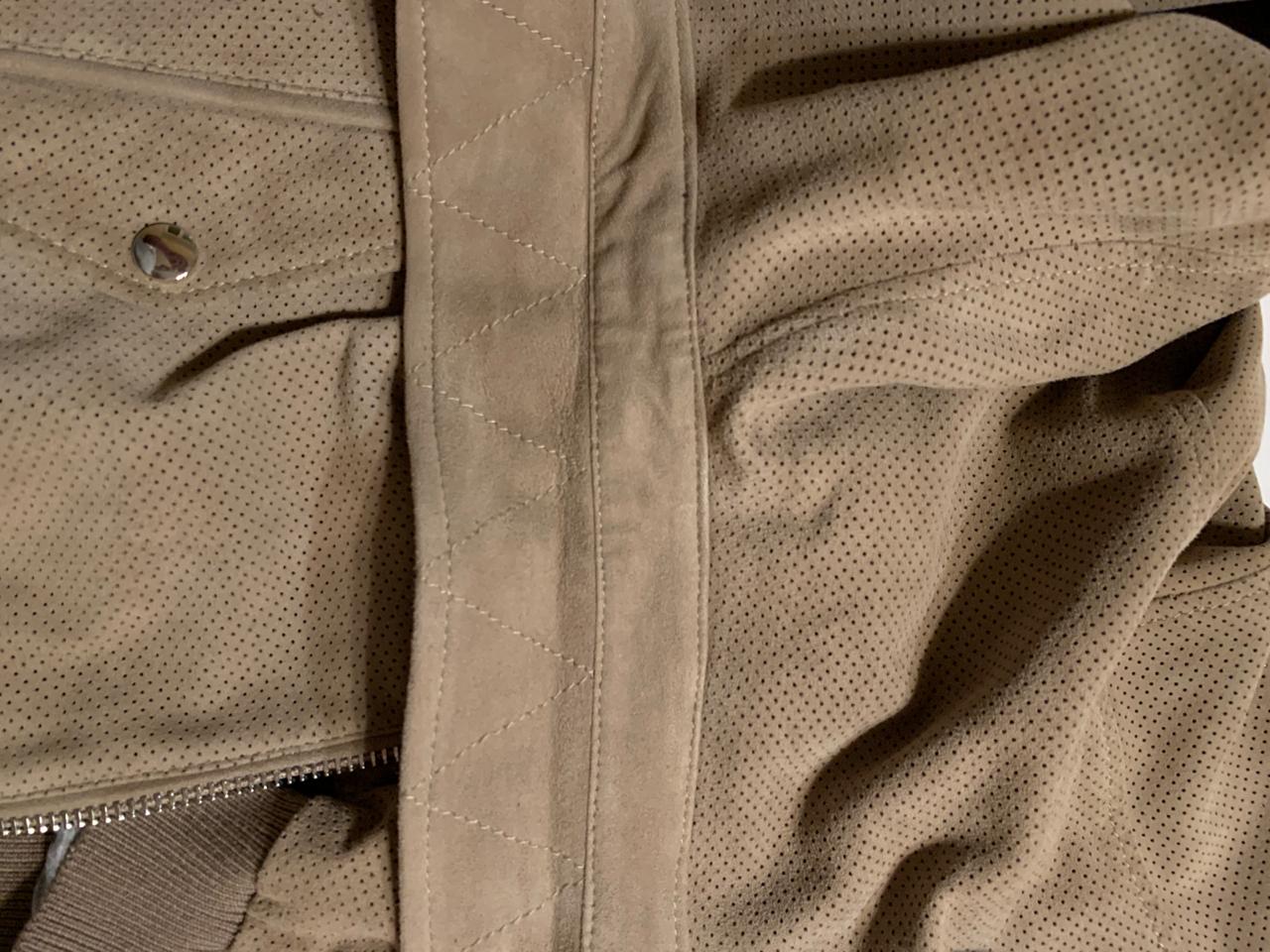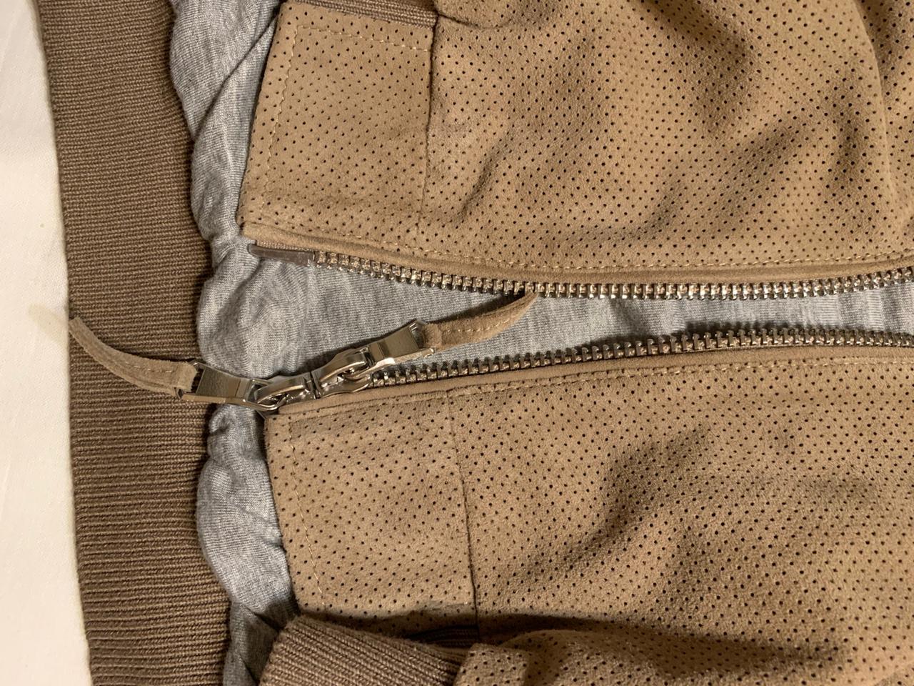 Продается новая элегантная мужская замшевая куртка-бомбер итальянского премиум бренда ELEVENTY превосходного исполнения, бежевого цвета , отложной воротник, застегивается на молнию с двойным ходом и логотипом бренда, наружные боковые карманы с клапанами на кнопках, внутренние карманы на молнии, трикотажные: манжеты рукавов, низ куртки , внутри подкладка из трикотажного полотна, состав ткани: 100% перфорированная замша, все бирки прилагаются, гарантированный 100% оригинал, размер 54(IT), производство Италия.