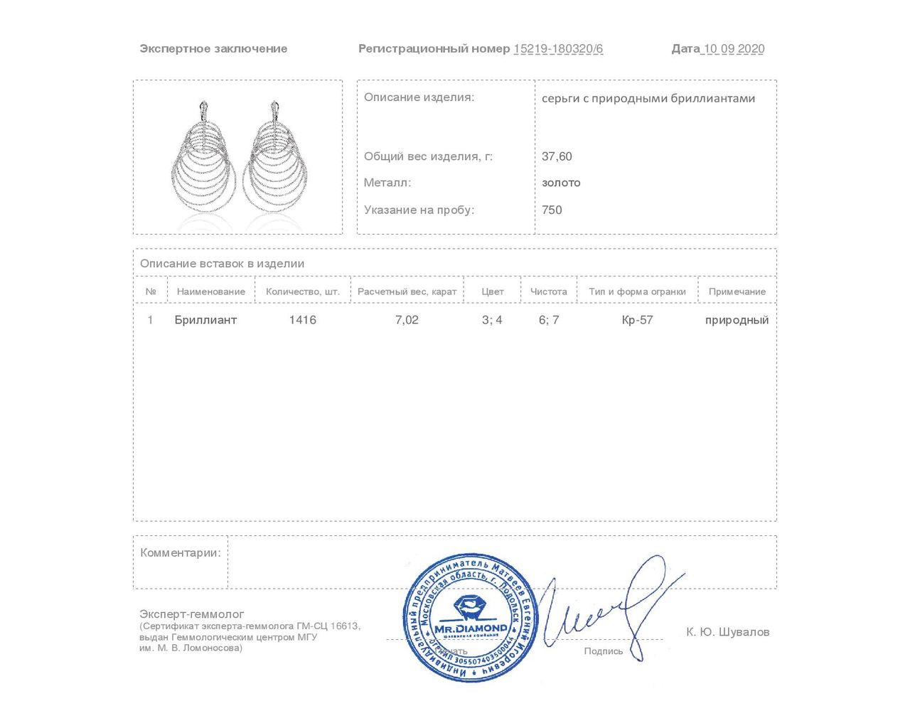 Завораживающие золотые серьги с бриллиантами 7.02ct