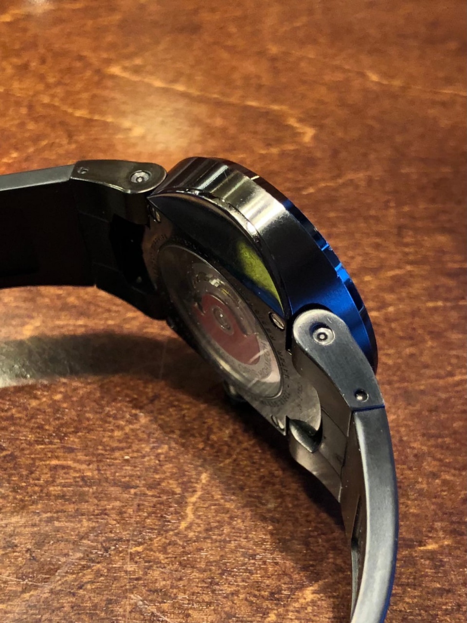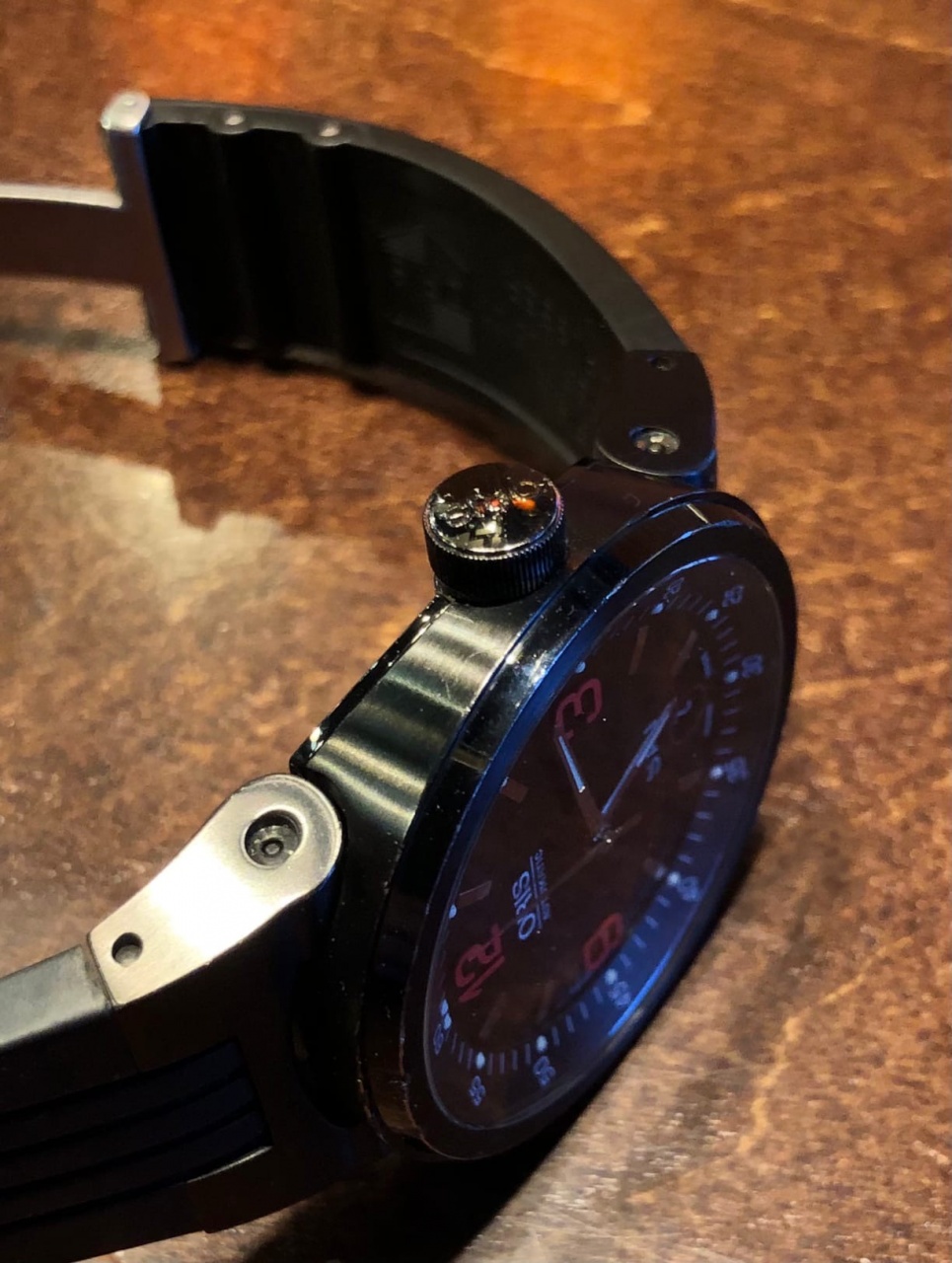 На корпусе в районе 12 часов есть маленькая выбоинка. На фото её видно в жизни едва заметна.