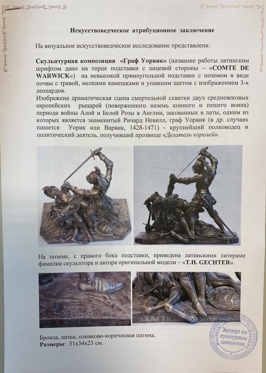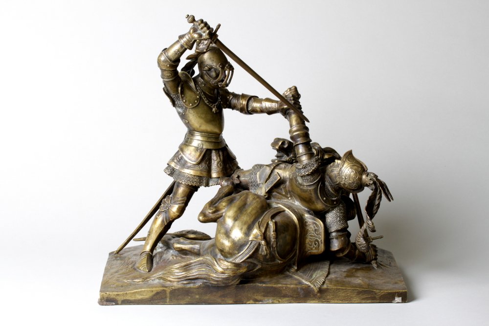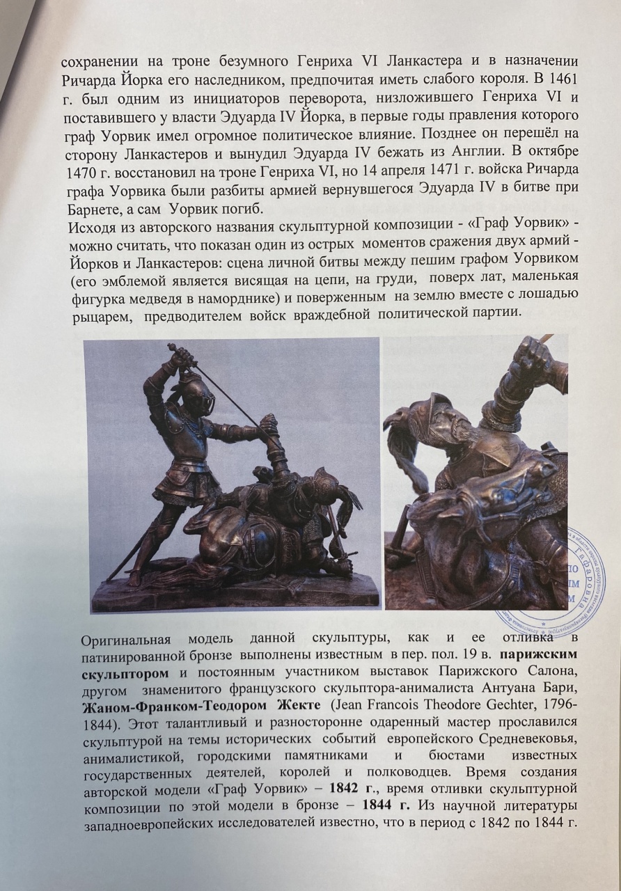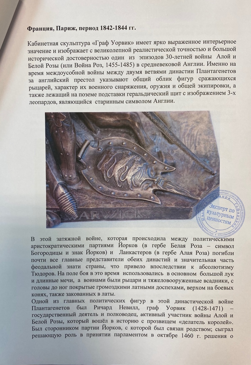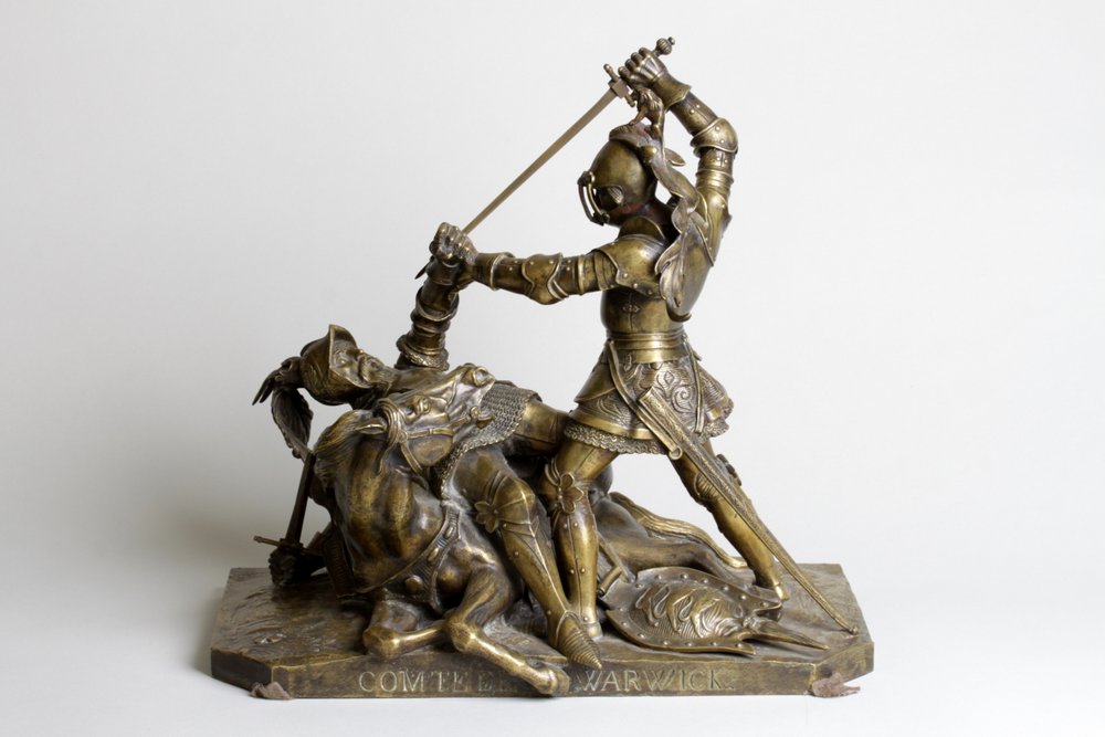 Антикварная бронзовая скульптура "Граф Уорвик (битва)". Франция, середина 19 века