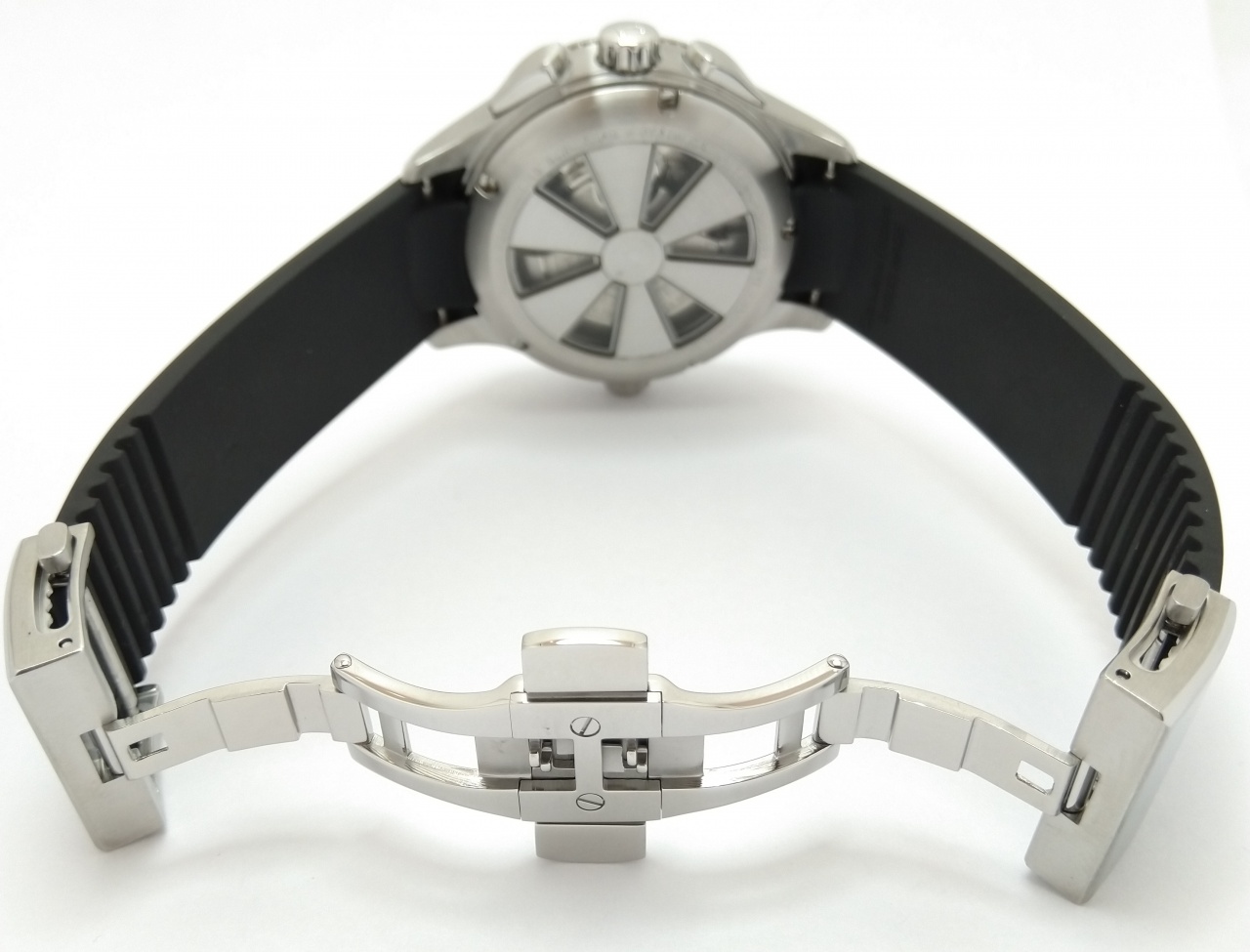 Каучуковый ремешок с раскладывающейся стальной застежкой-бабочкой.