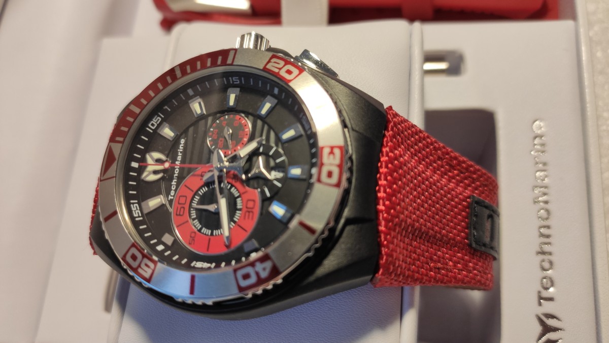TECHNOMARINE CRUISE LOCKER CHRONOGRAPH RED \ ХРОНОГРАФ \ 45 мм \ 2 ремня \ 200 м \ в комплекте