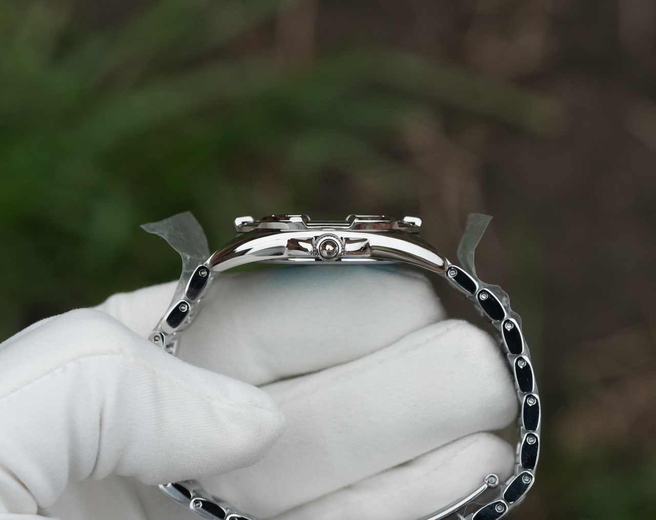 Стальной корпус, полировка, защитные выступы у заводной головки