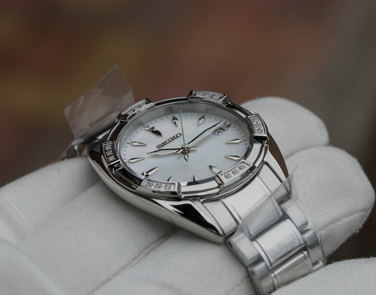 Светлый перламутровый циферблат, накладные полированные метки