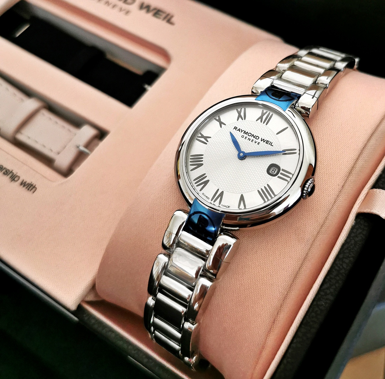 В продаже новые шикарные женские часы от Raymond Weil модель Shine в идеальном размере корпуса 32 мм с дополнительными ремешками на любой вкус, которые меняются за 30 сек без проблем. Надёжный швейцарский кварцевый механизм, синие стрелки, декорированный циферблат, кабошон в заводной головке, сапфировое стекло, литой браслет, комплект без гарантии. Пересыл без проблем. Смотрите также другие мои объявления.