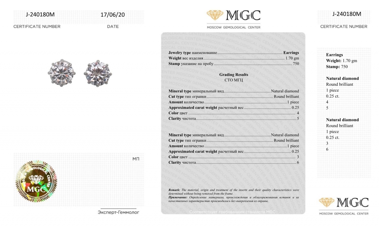 Серьги-пуссеты из белого золота с бриллиантами 0,5 карат (сертификат МГЦ) - Часовой форум Watch.ru