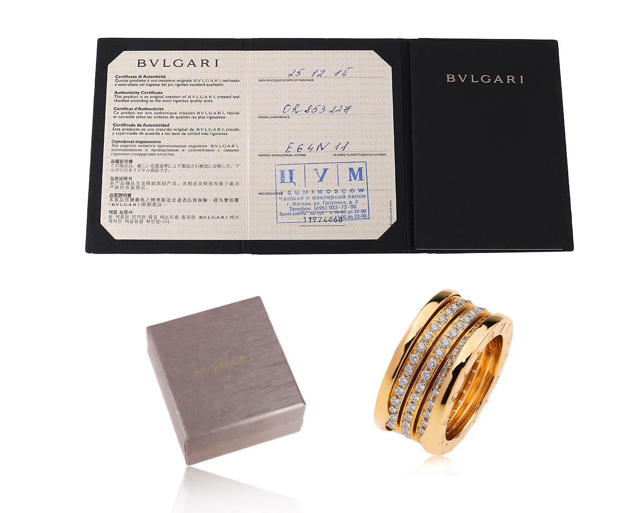 Оригинальное золотое кольцо с бриллиантами 0.92ct Bvlgari B.Zero1