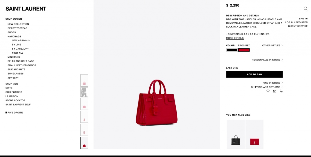 "Культовая сумка Sac De Jour стала визитной карточкой дома моды Ив Сен-Лоран. Узнаваемая сумка в прямых архитетурных формах с боковыми панелями, сложенными гармошкой, заслуженно получила свой культовый статус и признание поклонниц во всем мире."