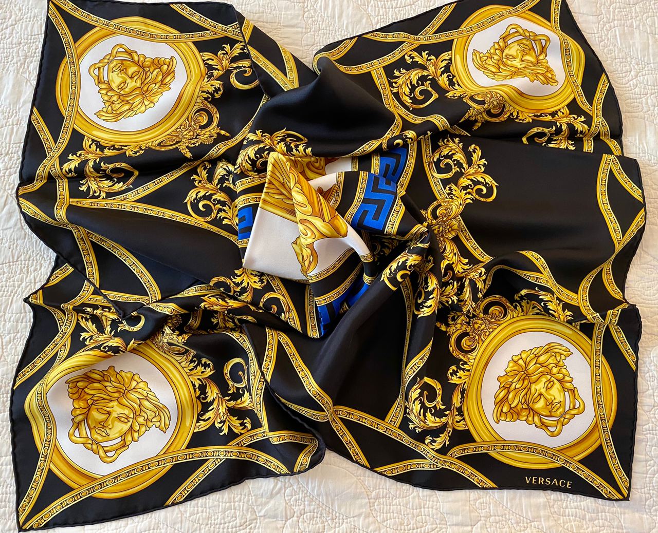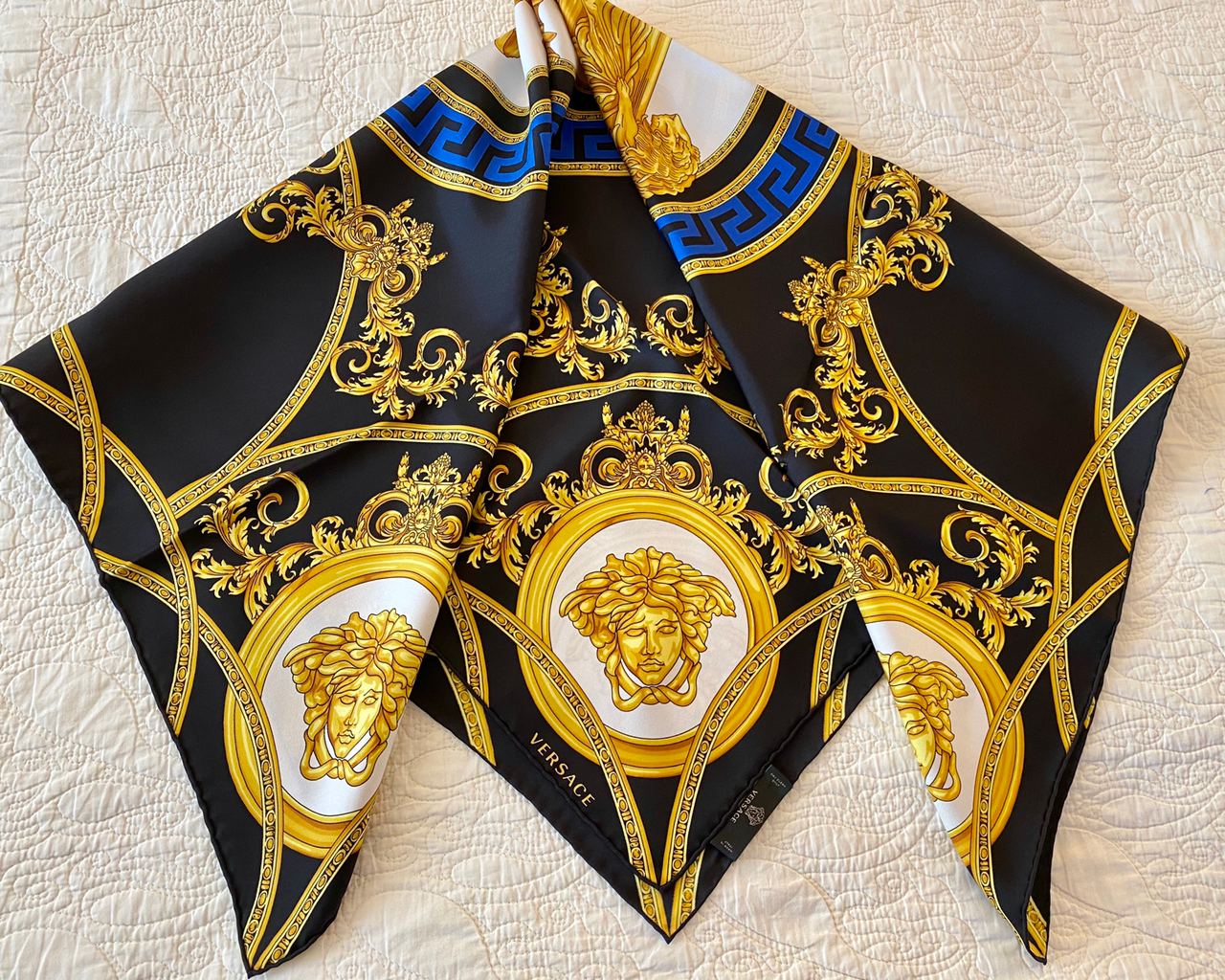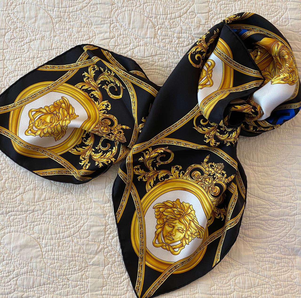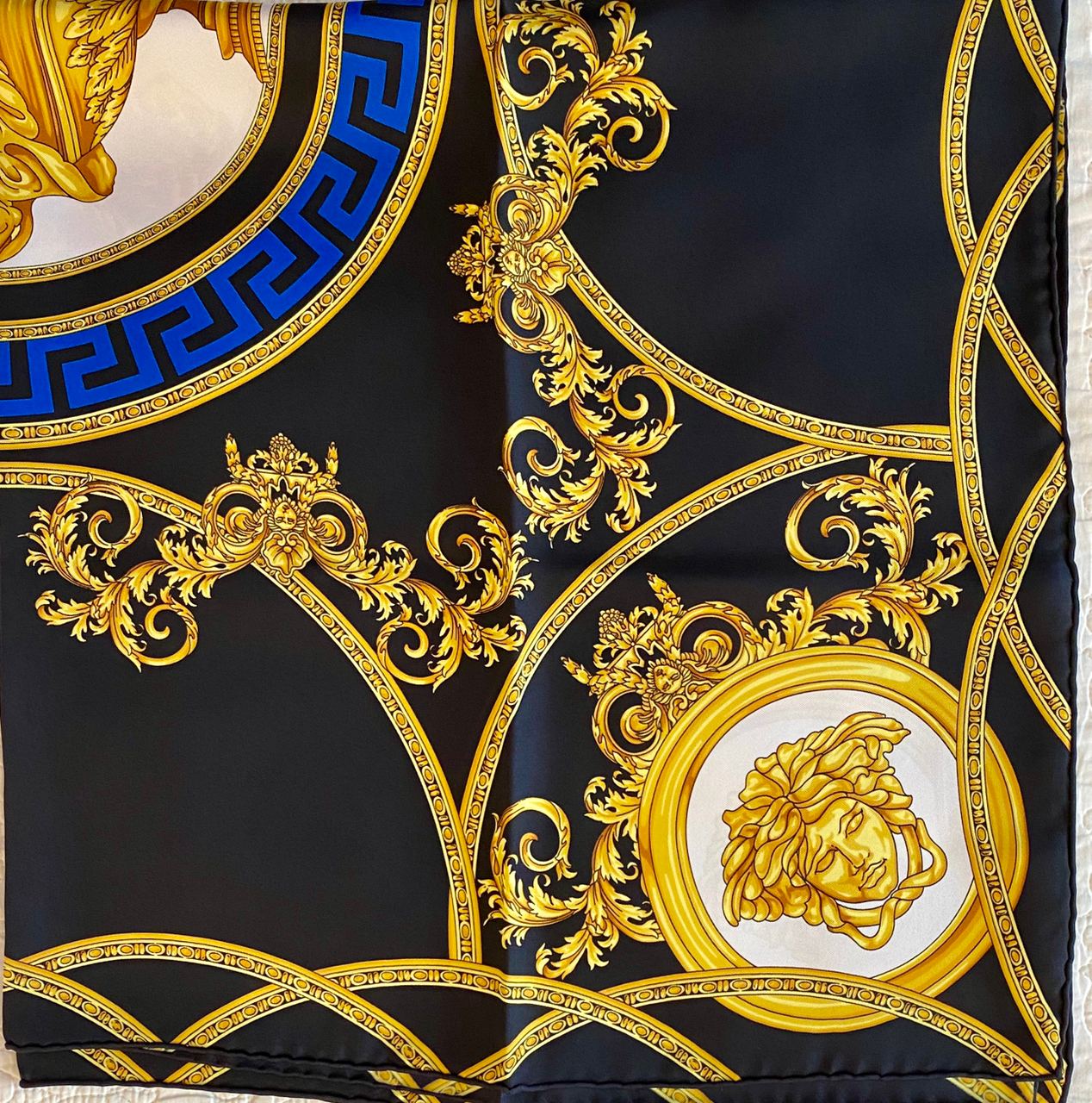 VERSACE. Платок женский 90х90см. НОВЫЙ, вся аутентика. Шелк 100%. Принт: золотой барокко на черном фоне