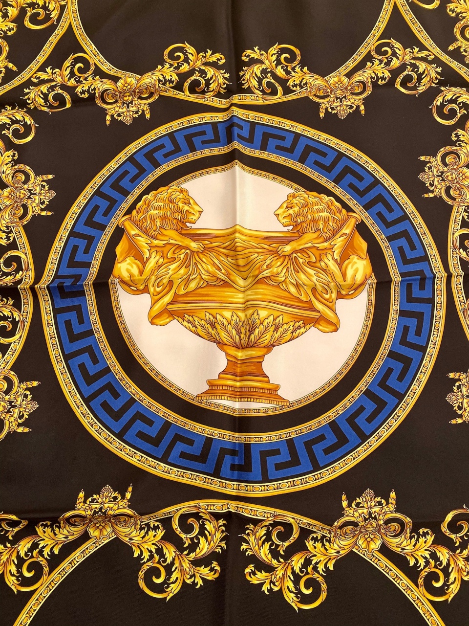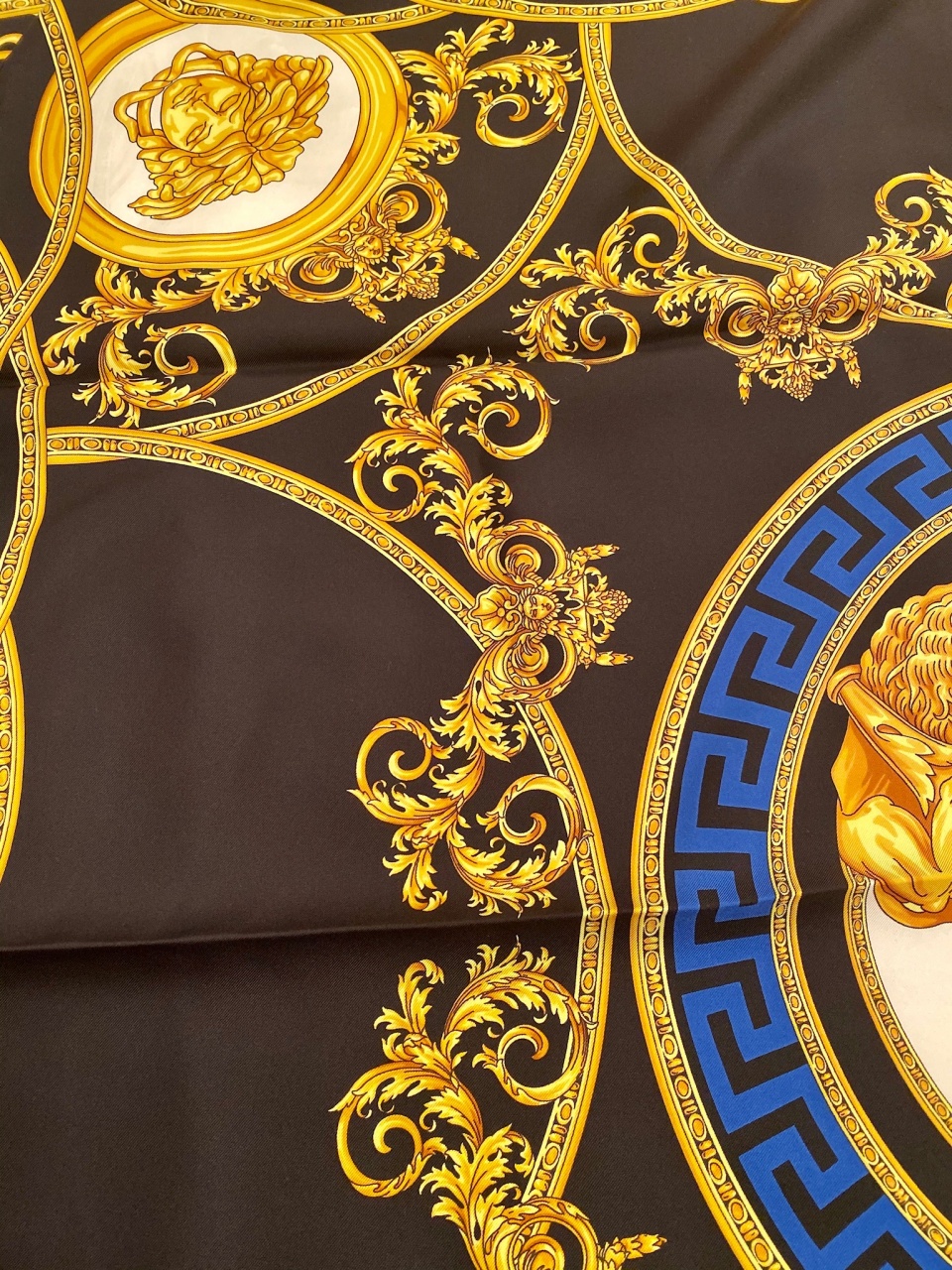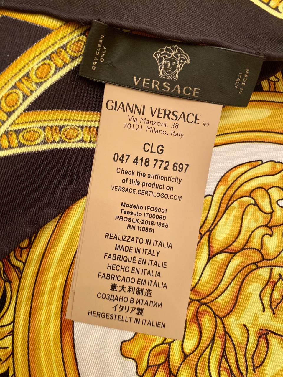 VERSACE. Платок женский 90х90см. НОВЫЙ, вся аутентика. Шелк 100%. Принт: золотой барокко на черном фоне