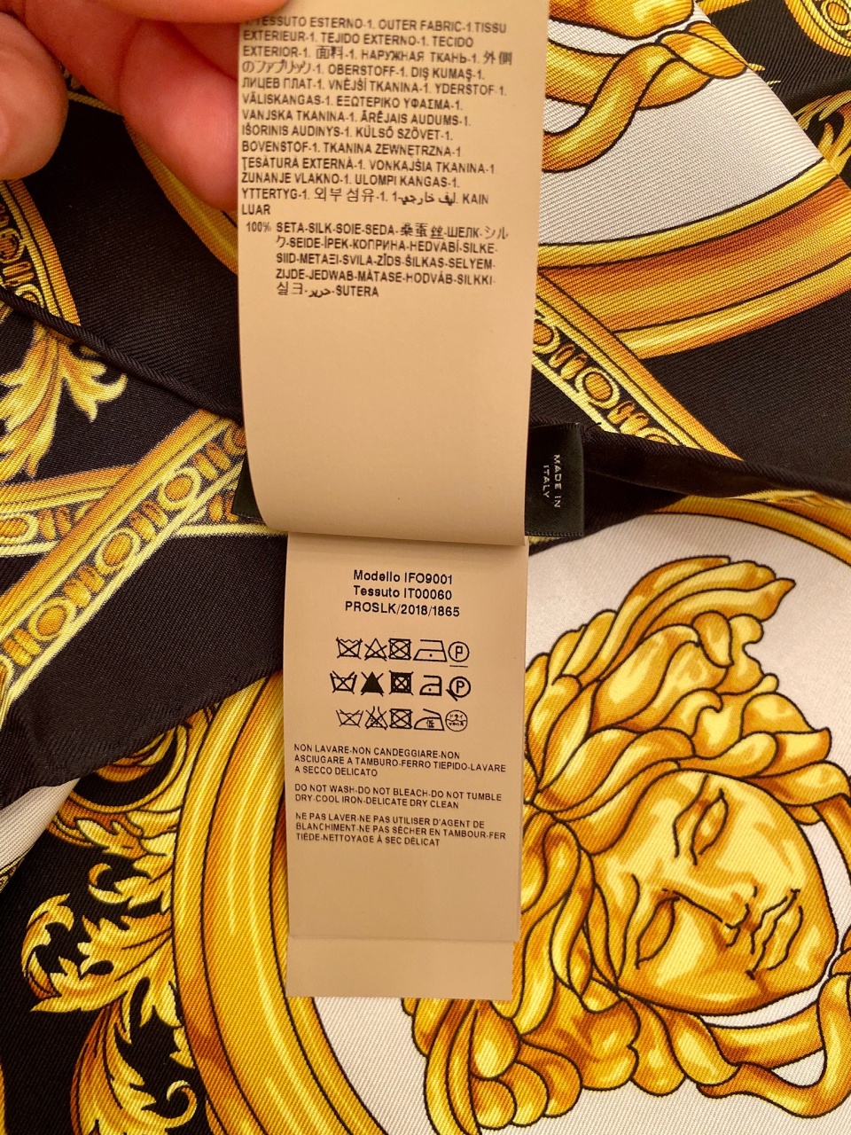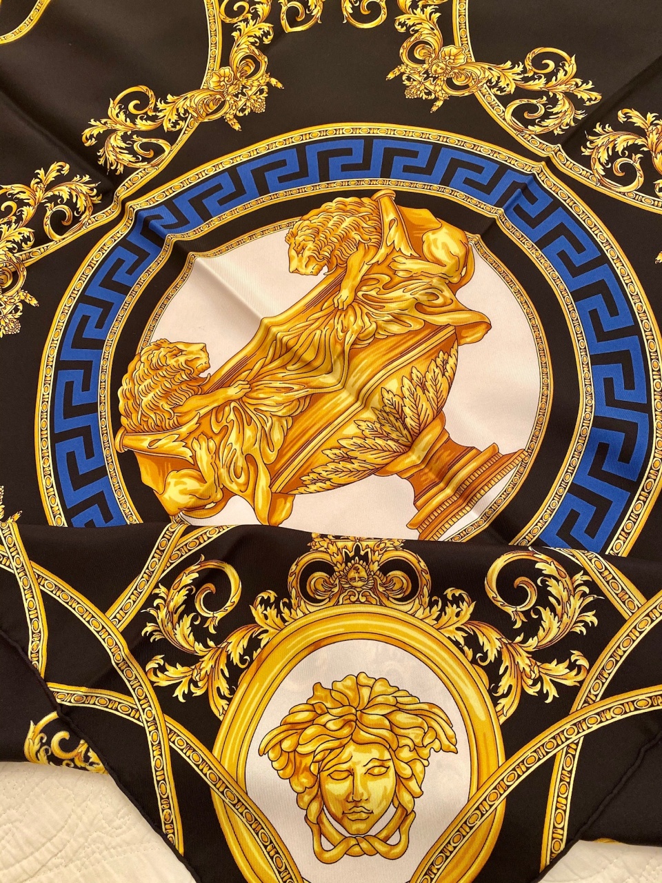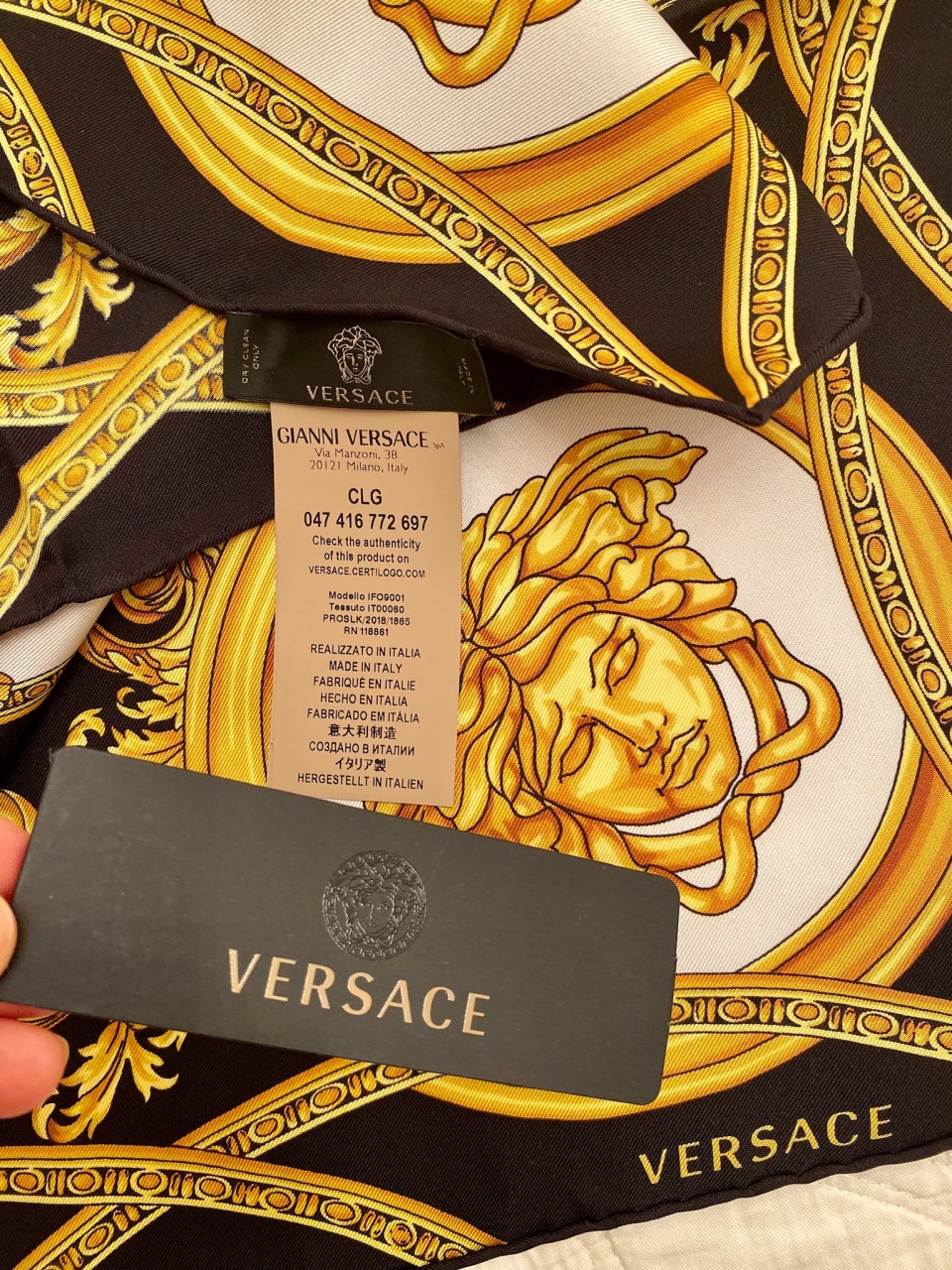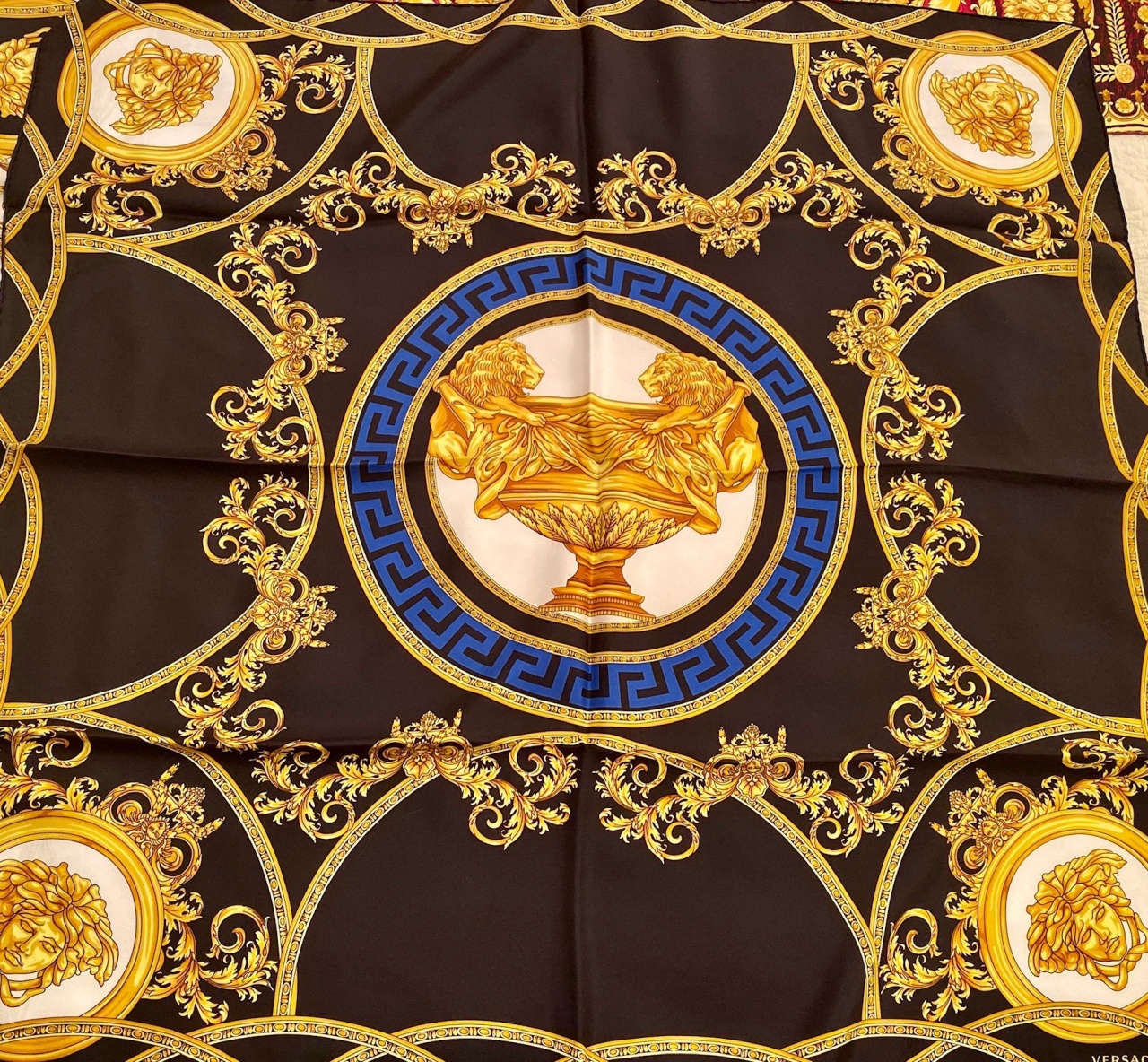 VERSACE. Платок женский 90х90см. НОВЫЙ, вся аутентика. Шелк 100%. Принт: золотой барокко на черном фоне