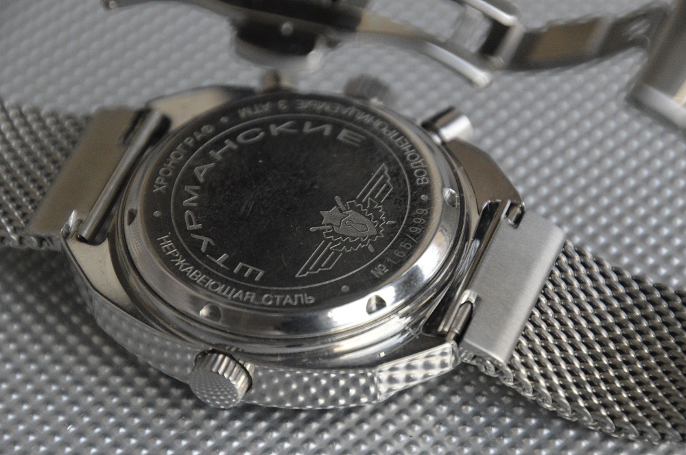 Корпус стальной, выполнен в более анатомической форме, сферическое минеральное стекло, циферблат с современным покрытием, водозащита, в отличие от оригинала, который ее не имел, интересное решение крепления браслета - уши на 20 мм, но сверху "прикрыты" 18 мм проемом.