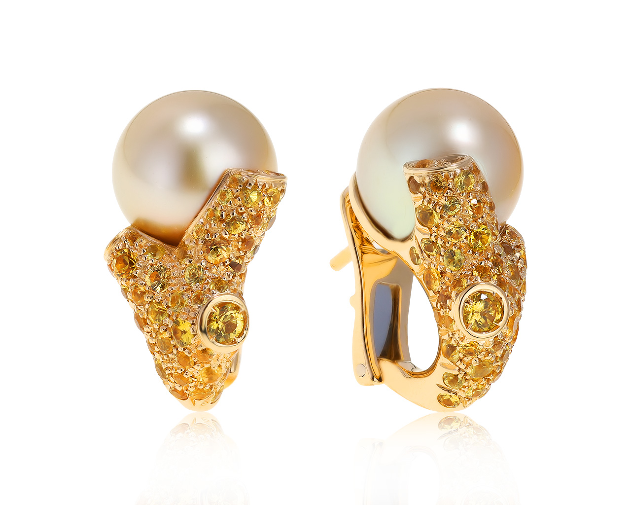 Оригинальные золотые серьги с сапфирами 3.23ct Mikimoto