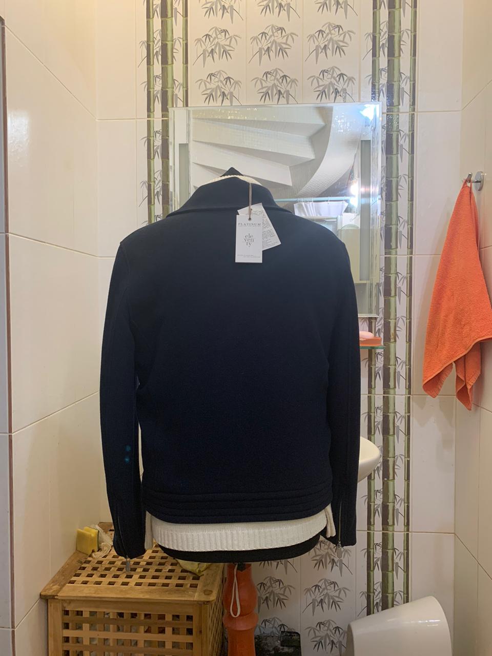 Продается новая стильная мужская куртка-«косуха» бренда ELEVENTY PLATINUM превосходного исполнения, плотное сукно, синего цвета, логотип, отложной воротник, молния с двойным ходом и логотипом бренда, итальянская фурнитура bap, наружные прорезные карманы на молнии, один нагрудный кармашек на молнии, внутренние карманы на молнии, внутри на подкладке, манжеты рукавов оригинально оформлены молниями, состав: 95% шерсть, 5% кашемир (материал Ermenegildo Zegna) все бирки прилагаются, гарантированный 100 % оригинал, размер 54(IT), производство Италия.