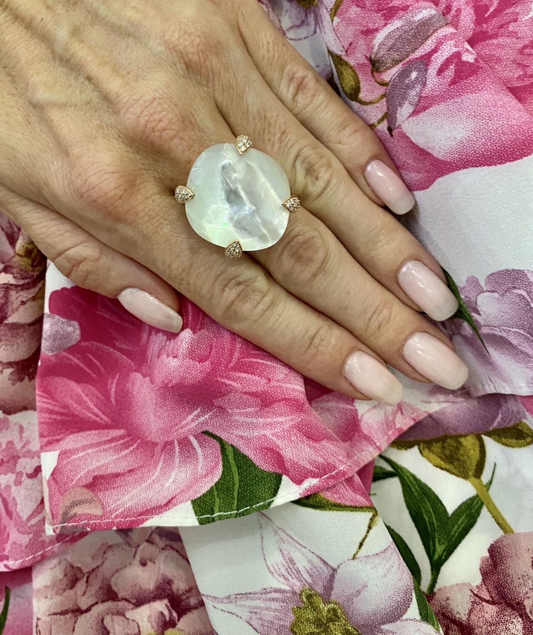 КОЛЬЦО ИТАЛЬЯНСКОГО БРЕНДА ZOCCAI С ПЕРЛАМУТРОМ И БРИЛЛИАНТАМИ, ТОРГ/ОТПРАВКА