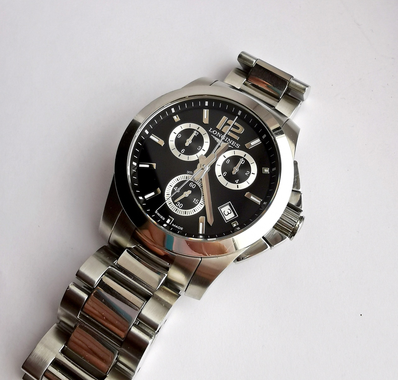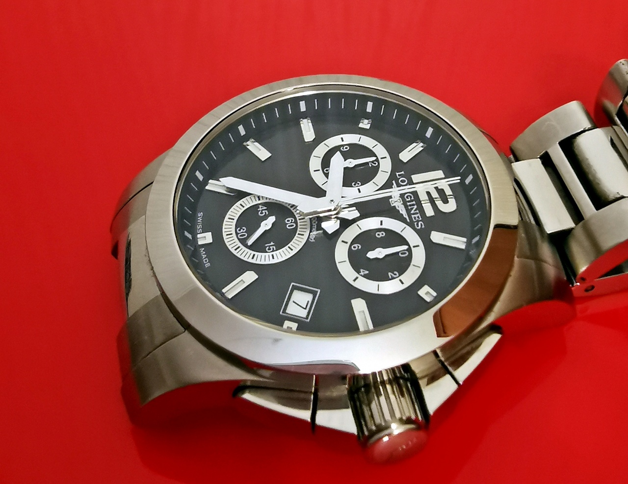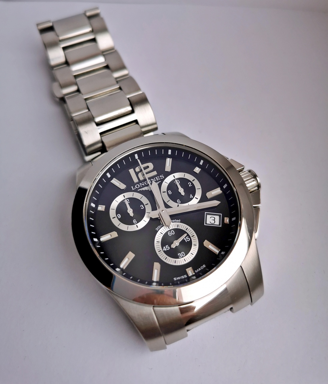 Диаметр: 41 мм. Калибр: L541. Кварцевый хронограф. Индикация даты. Браслетная застежка. Завинчивающаяся заводная головка, сапфировое стекло. Браслет: нержавеющая сталь 316L. Водостойкость: 300 м (WR 300). Коробка, инструкция, доп. звенья в комплекте, пересыл без проблем. Сейчас браслет отрегулирован на руку 18,5см в обхвате.