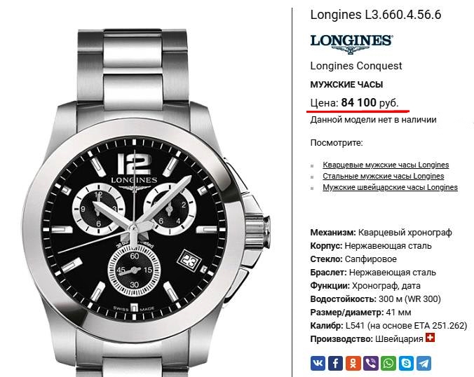 В продаже швейцарские мужские наручные часы Longines из коллекции Conquest. Изделия этого бренда неоднократно становились победителями самых престижных выставок и конкурсов мирового масштаба.