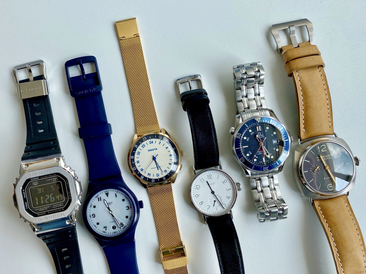 SMP 300, PAM 346, GMT‑Master II, Chronomaster Sport, Ракета 24ч, CasiOak Rainbow, MoonSwatch x2, FF Antarctic Ocean