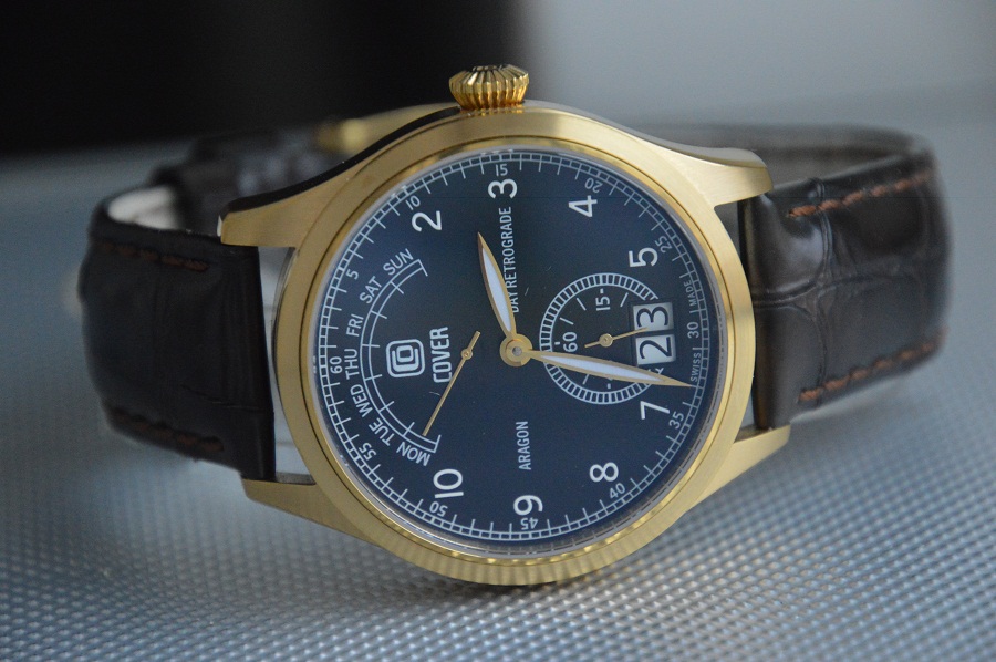 В продаже шикарный Cover day-date retrograde, реф. СО 171.06, отличное качество исполнения часов и ремня, размер 44 мм - заметные, четкая визуализация, сапфир, кварц, 100 м, сталь с ПВД покрытием под бронзу(вид лучше, чем на фото).