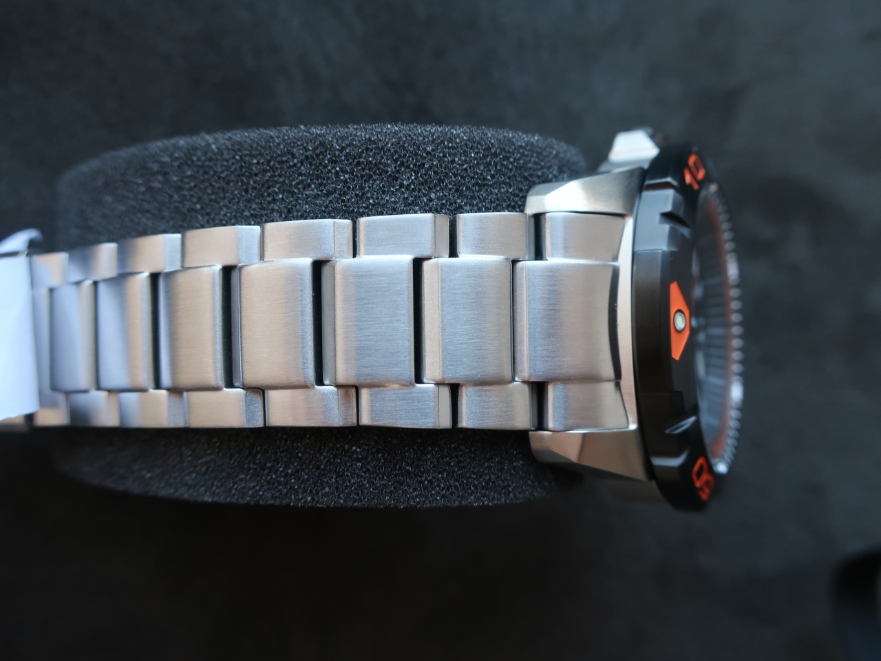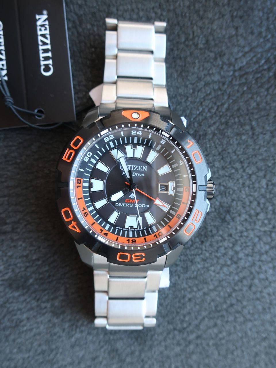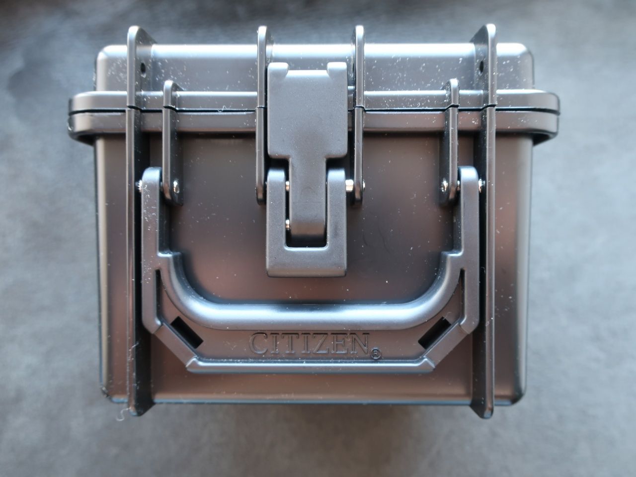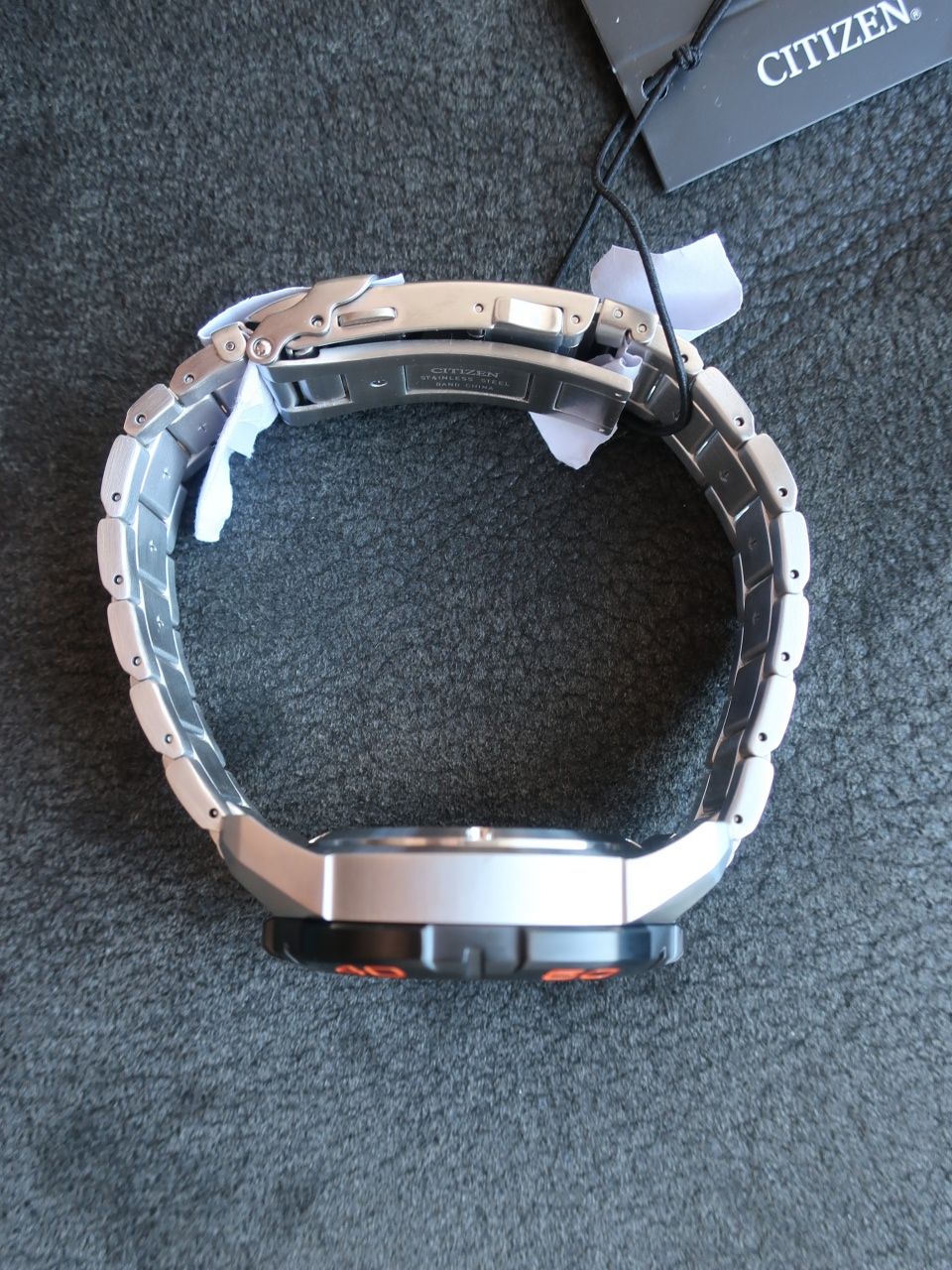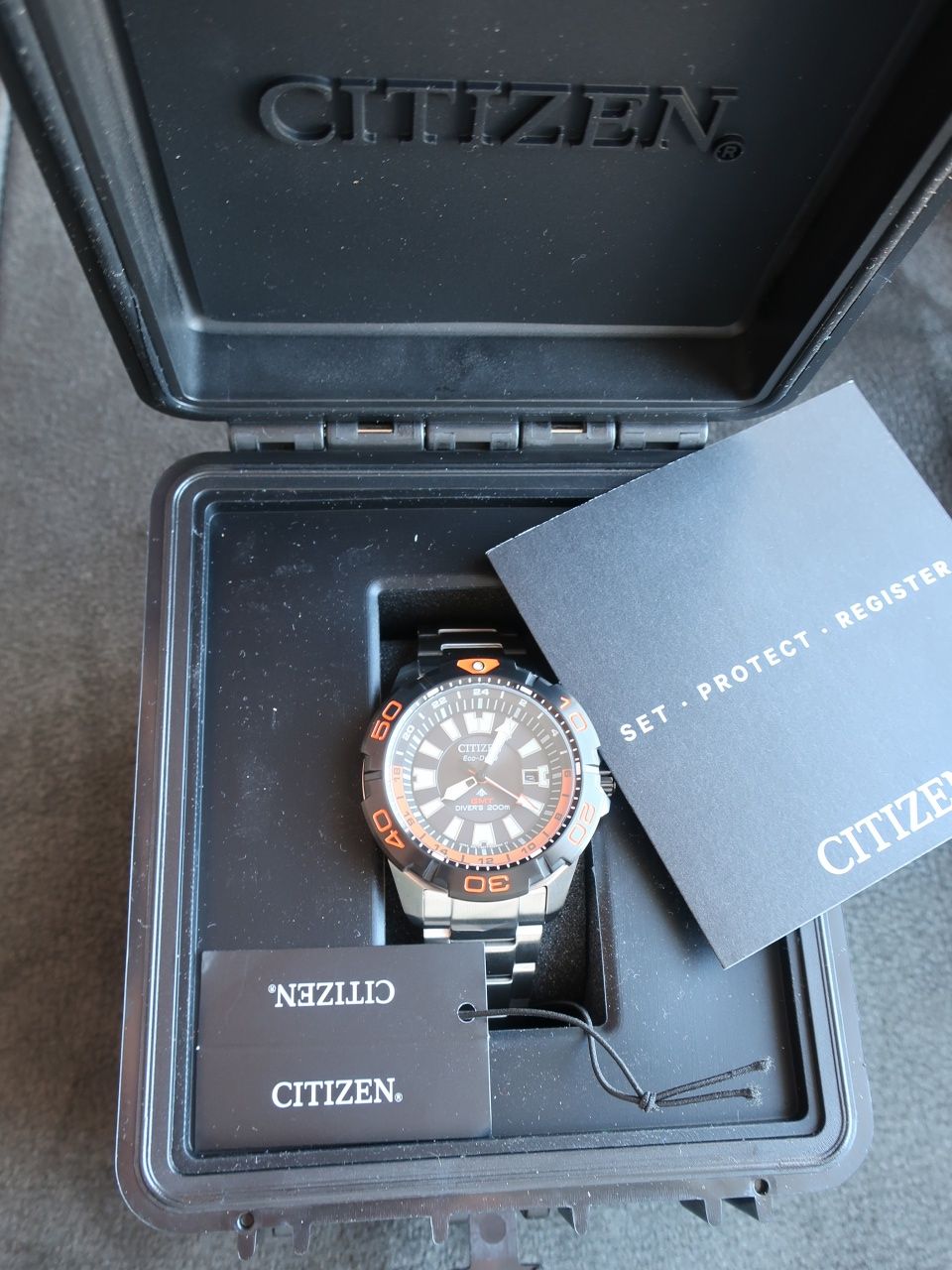 Кварцевые часы на механизме Eco-Drive B877 (заряжаются от любого источника света) с индикатором низкого заряда заряда аккумулятора и защитой от перезаряда. Отображение второго часового пояса. Запас хода 180 дней. Функция быстрого старта после полной разрядки аккумулятора. Стальной сатинированный корпус с выступами для защиты заводной головки. Однонаправленный безель с ионным покрытием на 60 щелчков. Антибликовое сапфировое стекло. Черный циферблат с накладными метками. Люминесцентные стрелки, метки и точка на безеле. Завинчивающаяся задняя крышка и заводная головка. Водозащита: 200м / 20Bar (подводное плавание с аквалангом). Стальной литой браслет. Расстояние между ушками 22 мм. Раскладывающаяся застежка с кнопками раскрытия, предохранительной скобой и функцией быстрой регулировки размера браслета. Корпус диаметром 44 мм и толщиной 13 мм.