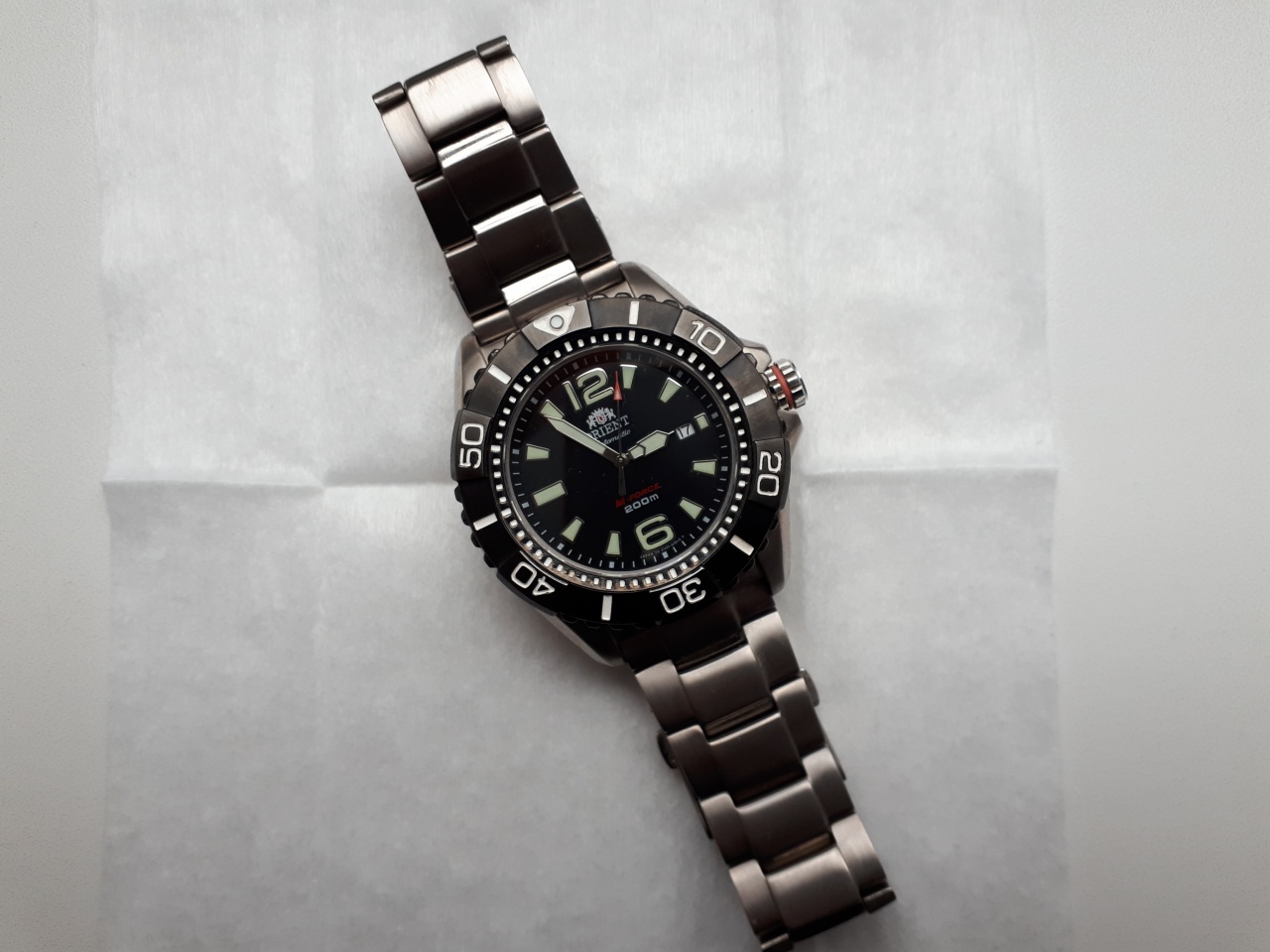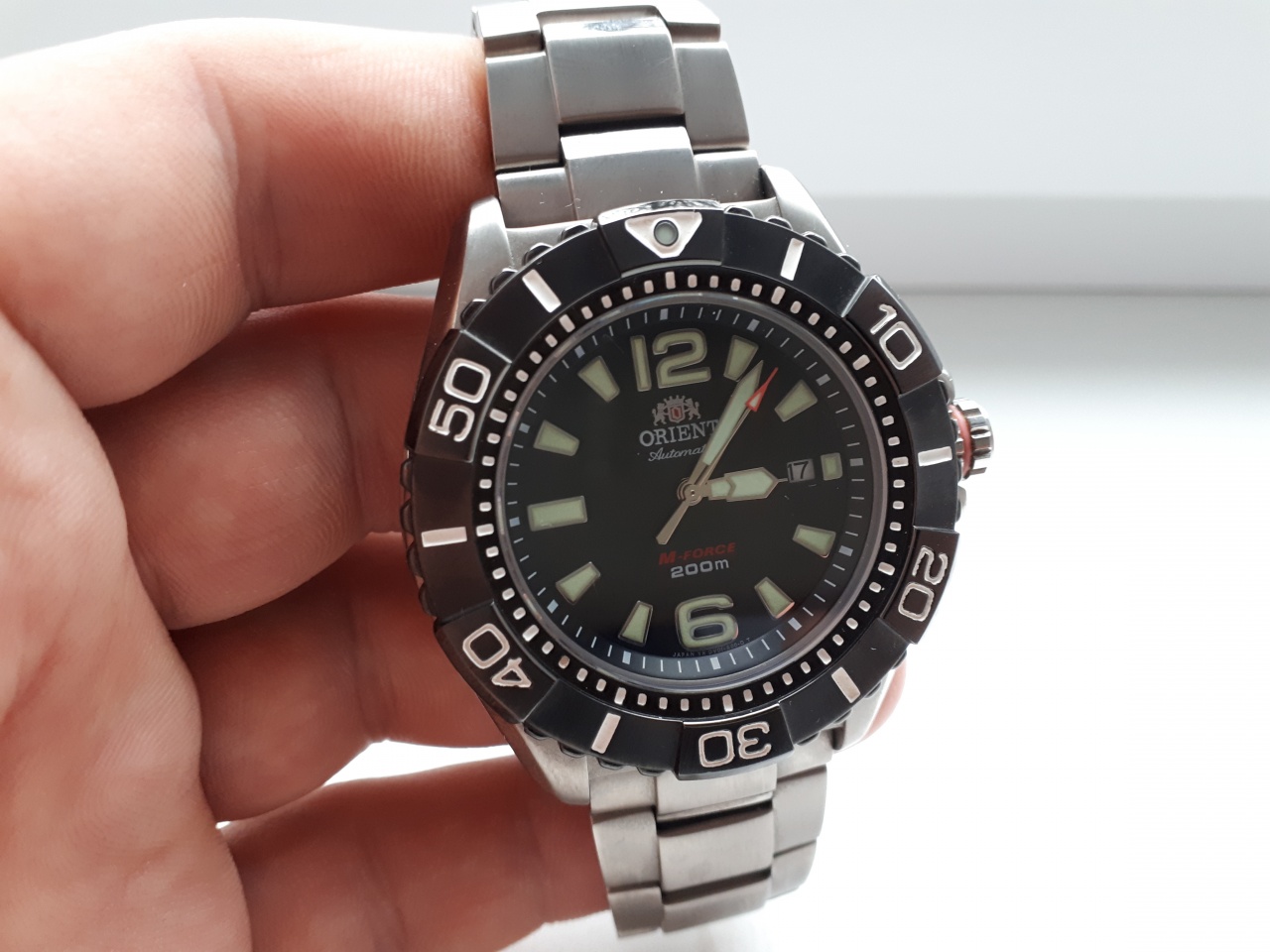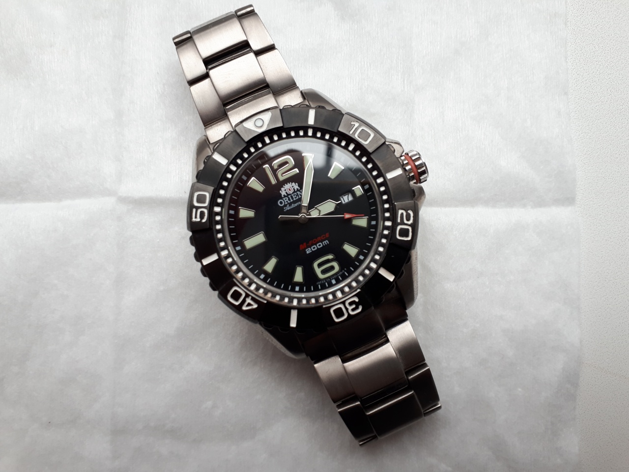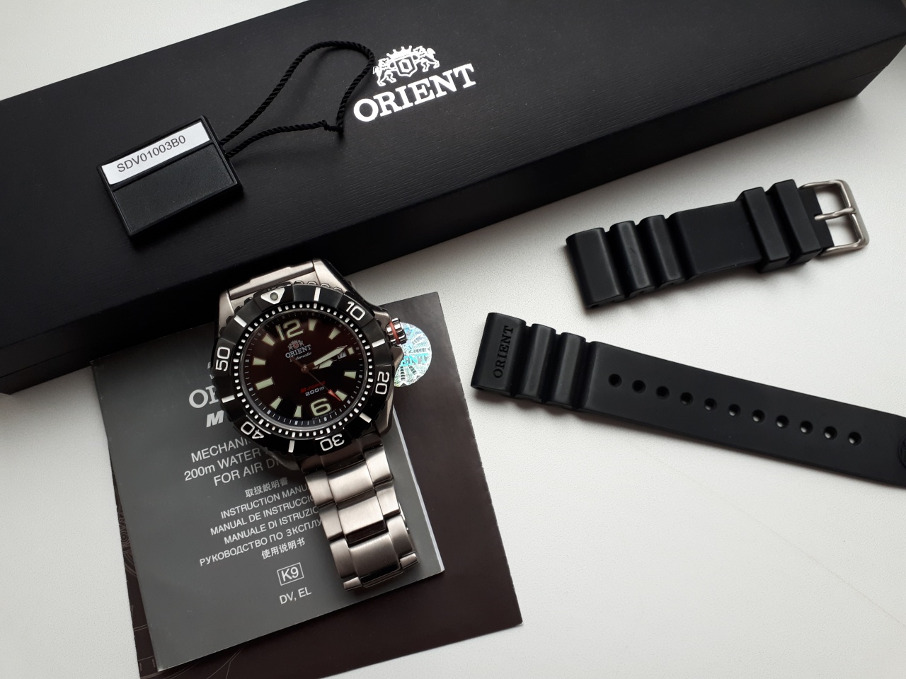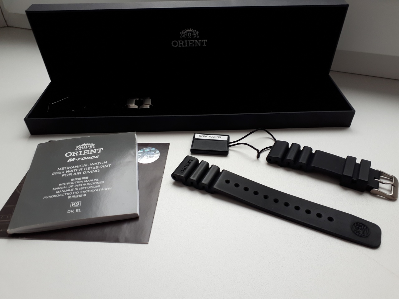 Мужские титановые механические наручные часы с автоподзаводом и возможностью ручного завода Orient SDV01002B0 коллекции M-Force. Калибр механизма — DV(407). В данной модели используются ударостойкие подшипники для защиты балансира от ударов. Антимагнитная защита. Запас хода более 40-ка часов. Количество камней - 22. Данная модель обладает высокой степенью водонепроницаемости WR200 (20 атм) и подходит для глубокого погружения под воду. Cапфировое стекло устойчивое к возникновению царапин. На циферблате отображается дата. Функция стоп-секунда (остановка секундной стрелки для установки точного времени). Стрелки и цифры покрыты люминесцентным напылением (светятся в темноте). Завинчивающаяся заводная головка и задняя крышка для более уверенной водонепроницаемости часов. На корпус нанесено PVD покрытие чёрного цвета. Вращающийся безель. Японская сборка. В подарок оригинальный каучуковый ремешок. Часы в прекрасном состоянии, бережное отношение, практически не носил.