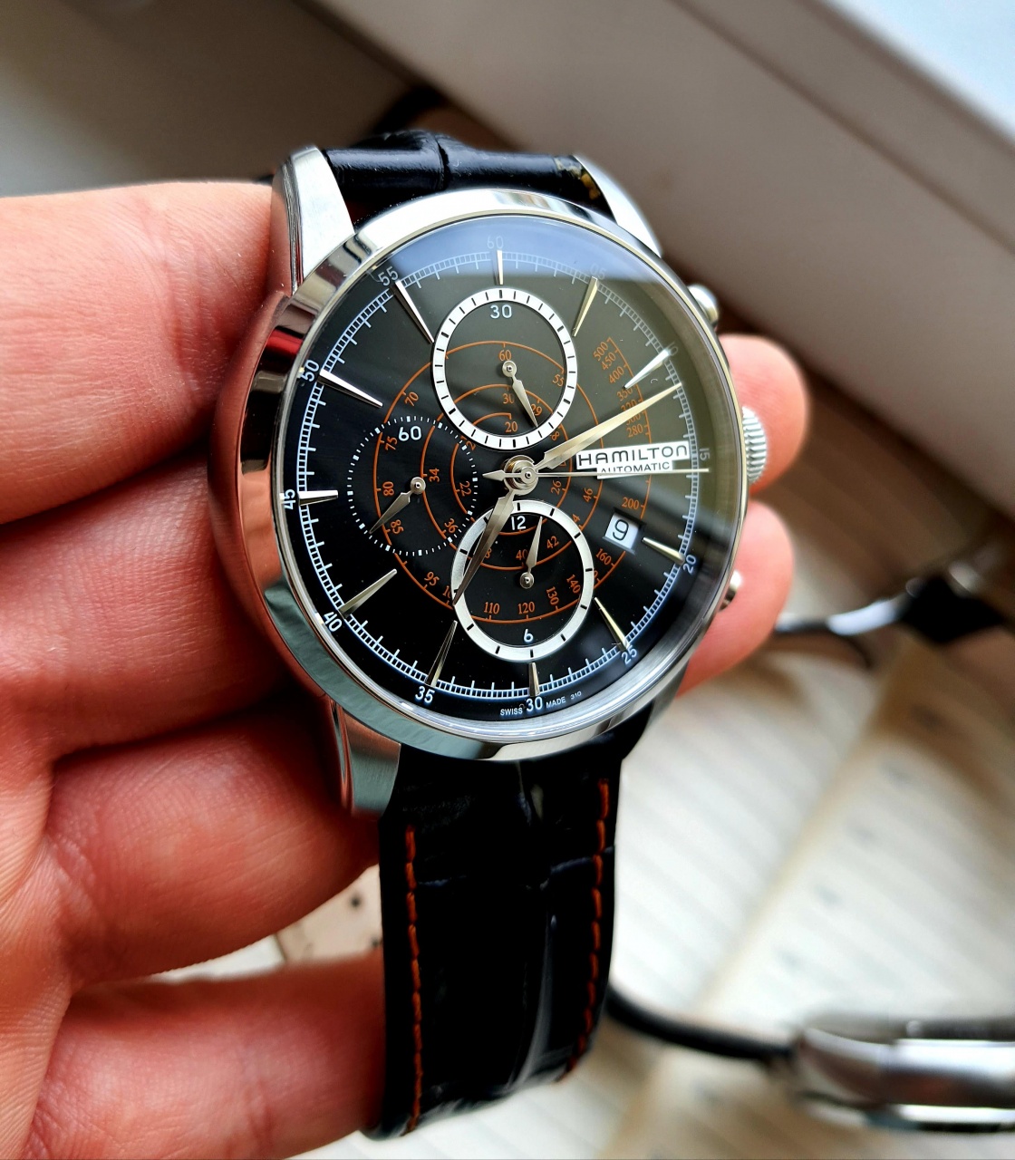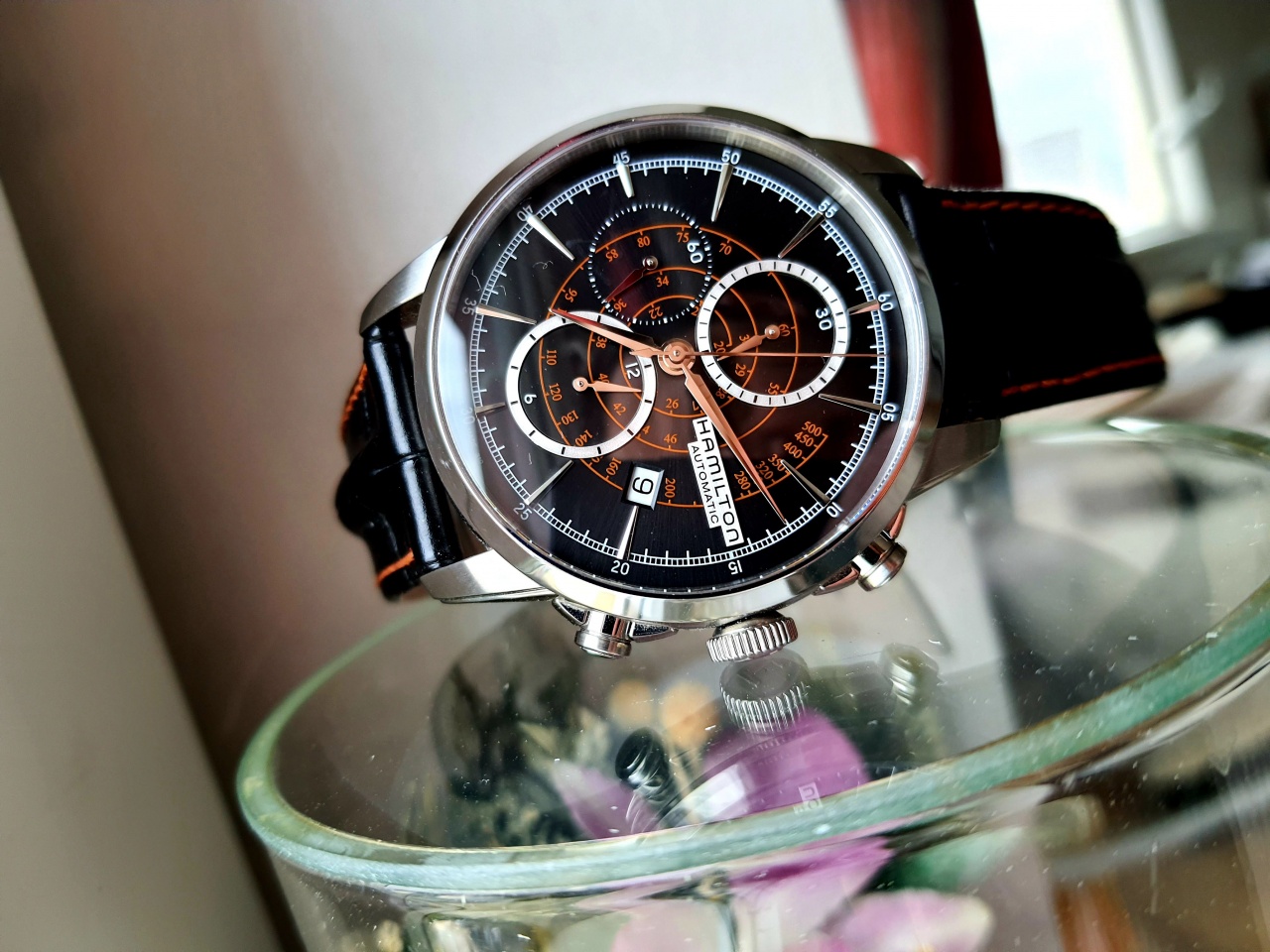 Так же очень интересно по дизайну обыграны пушеры хронографа, в моём воображении они похожи на часть ретро локомотива паровоза.