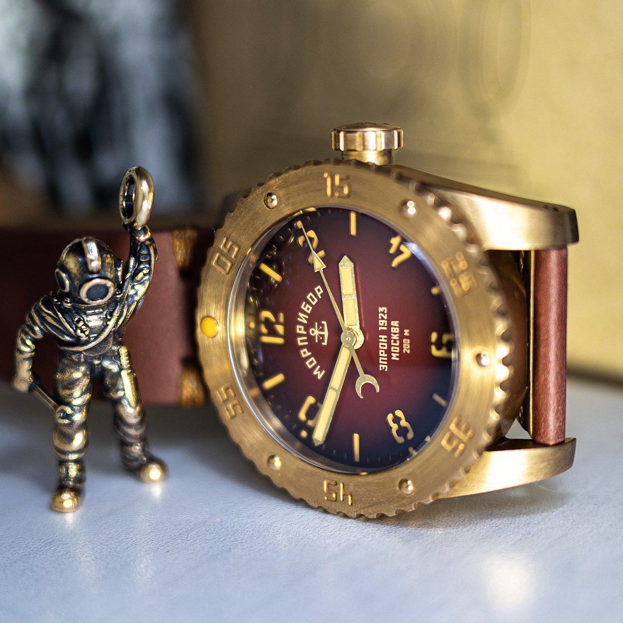 1. Бронзовый дайвер «Глубинный» в винтажном стиле. В 2023 году эта модель получила от Национальной Ассоциации Часовщиков диплом «Лучшие часы России» в номинации «Русский проект». Цвет циферблата чёрный с градиентом.