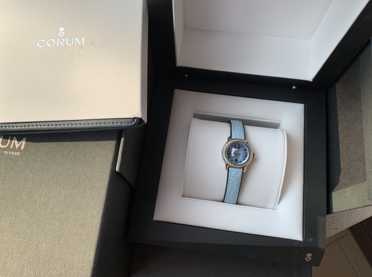 CORUM BUBBLE mini с 41 бриллиантом на безеле 0.48ct и перламутровым циферблатом.