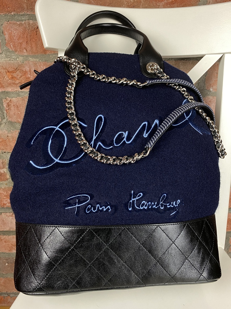 Сумка украшена вышивкой Chanel Paris-Hamburg.