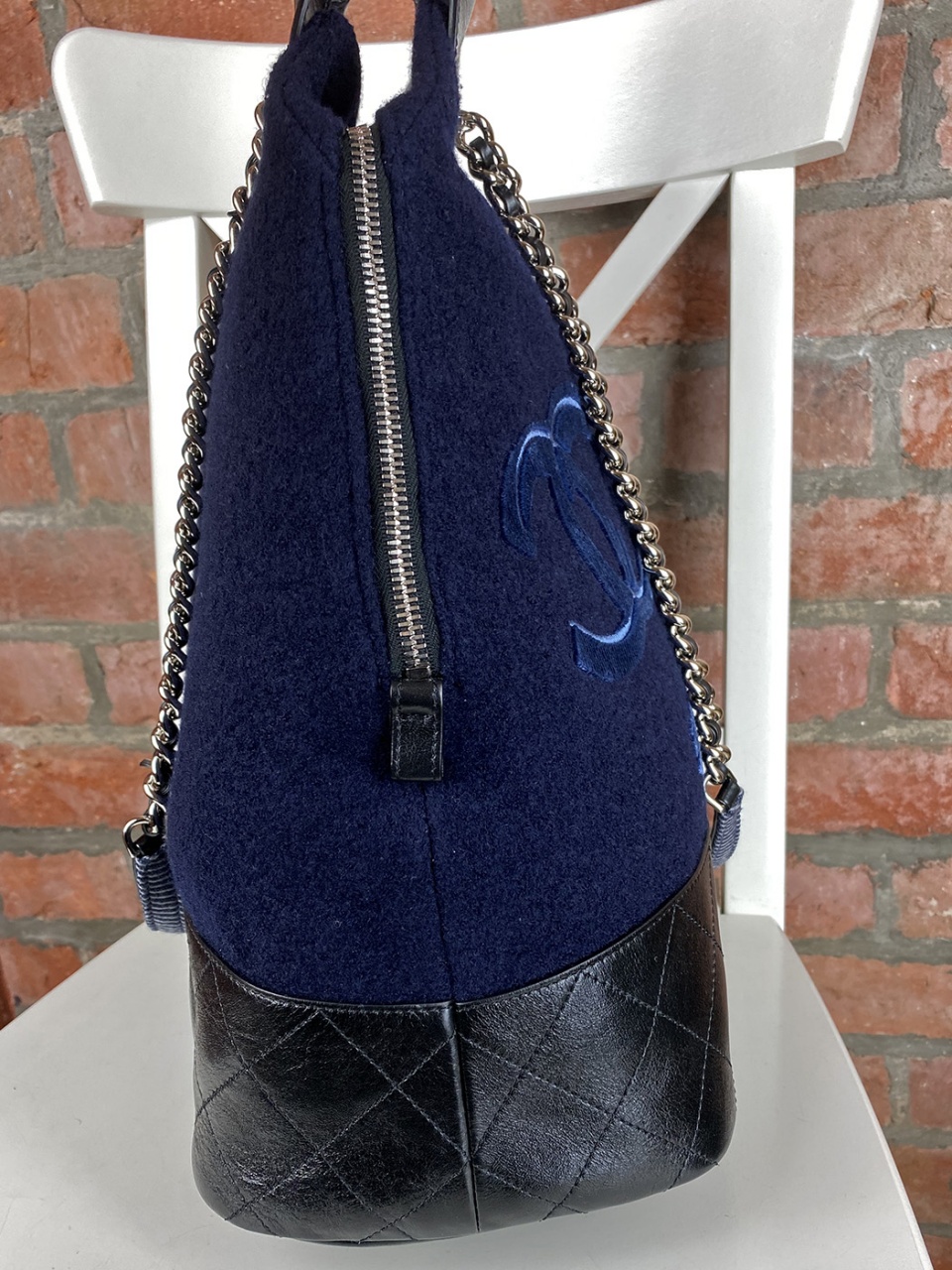 Продается великолепная лимитированная сумка Chanel из коллекции Métiers d'Art Paris-Hamburg. Сумка выполнена из сочетания натуральной кожи черного цвета и фирменного шерстяного твида Chanel темно-синего цвета.
