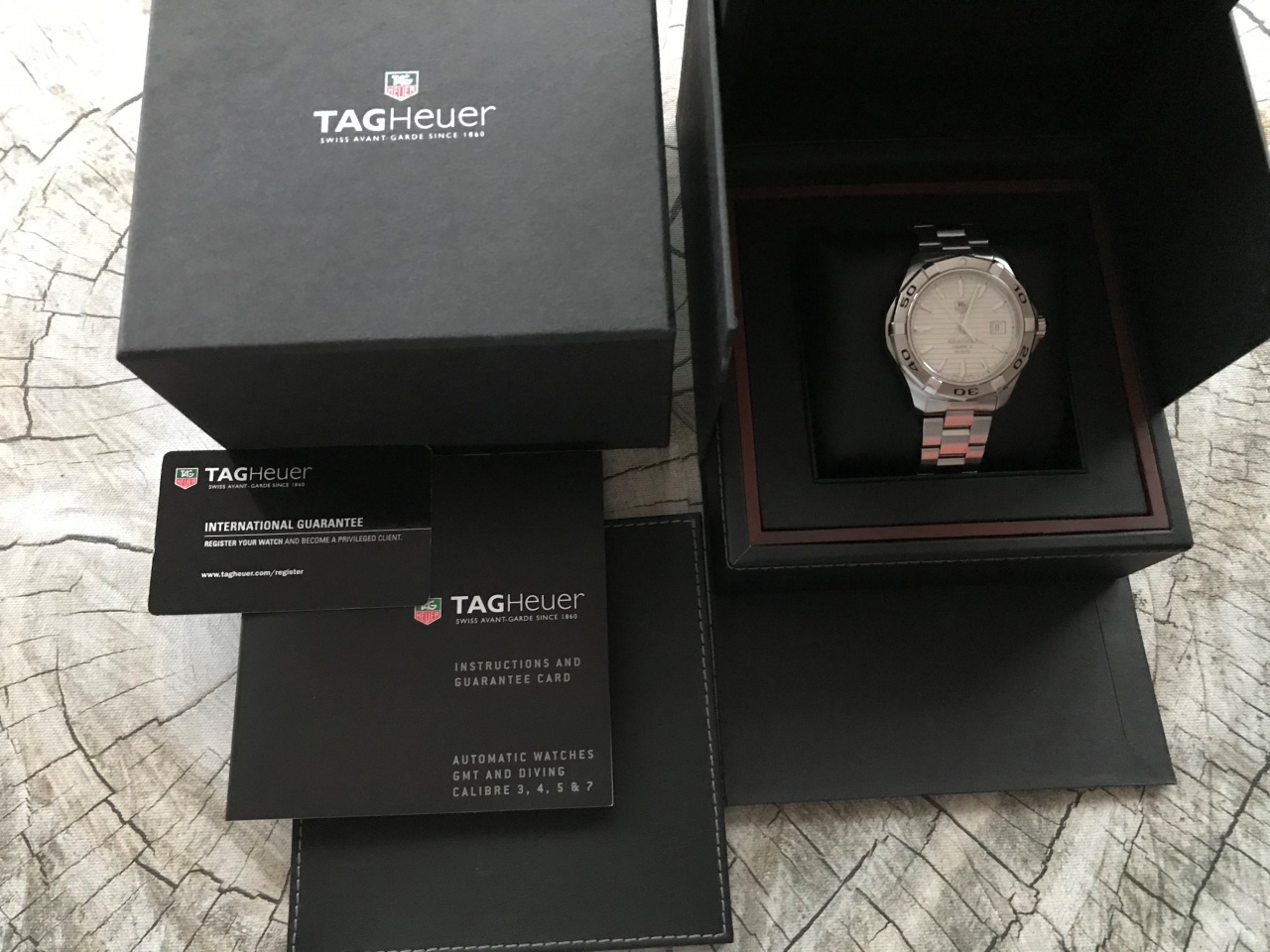 В наличии замечательный мужской дайвер от ведущего часового гиганта Tag Heuer, модель Aquaracer WAP2011.BA0830 в отличном состоянии. Полный комплект: часы, внешняя коробка, шкатулка, чехол, инструкция, гарантийная карта, чеки.