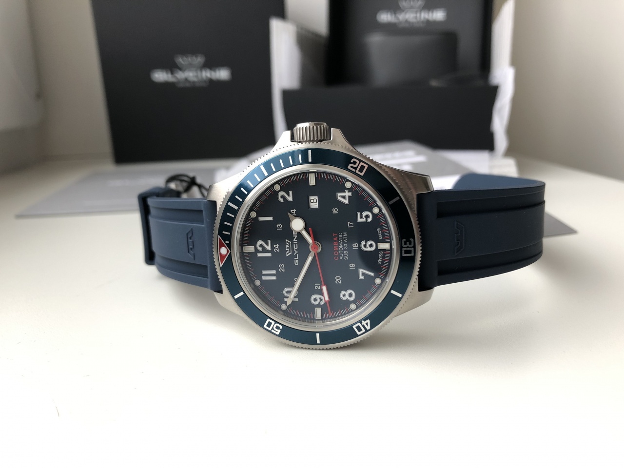Glycine Combat SUB 46mm! Крупный дайвер 300м в синем цвете. Лучшая цена!