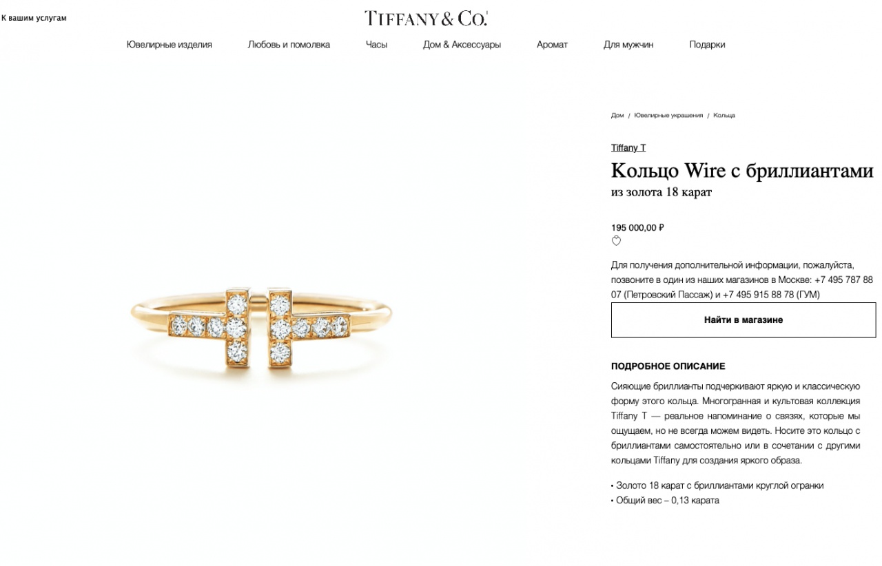 КОЛЬЦО TIFFANY T WIRE в ЖЁЛТОМ ЗОЛОТЕ С БРИЛЛИАНТАМИ