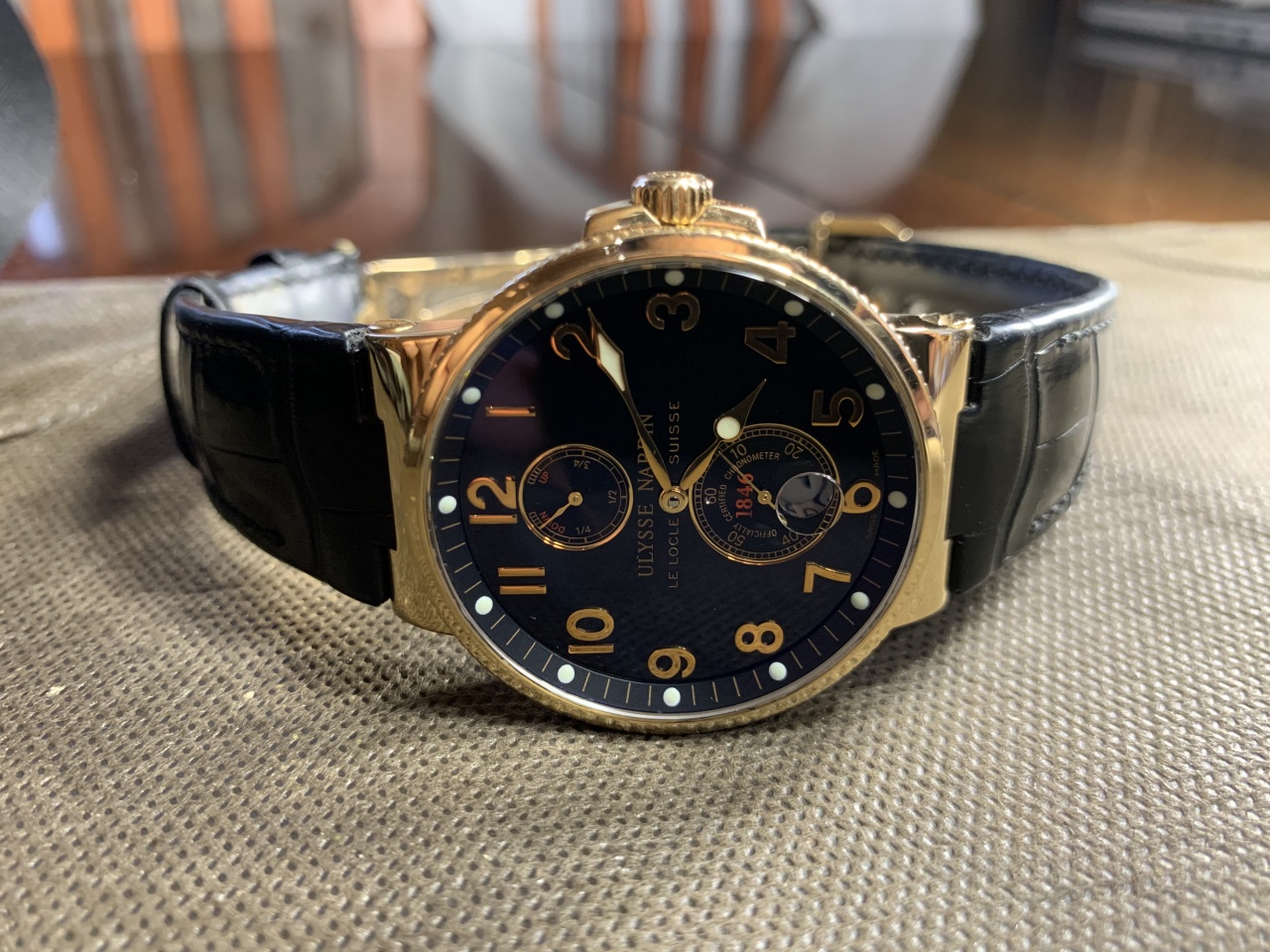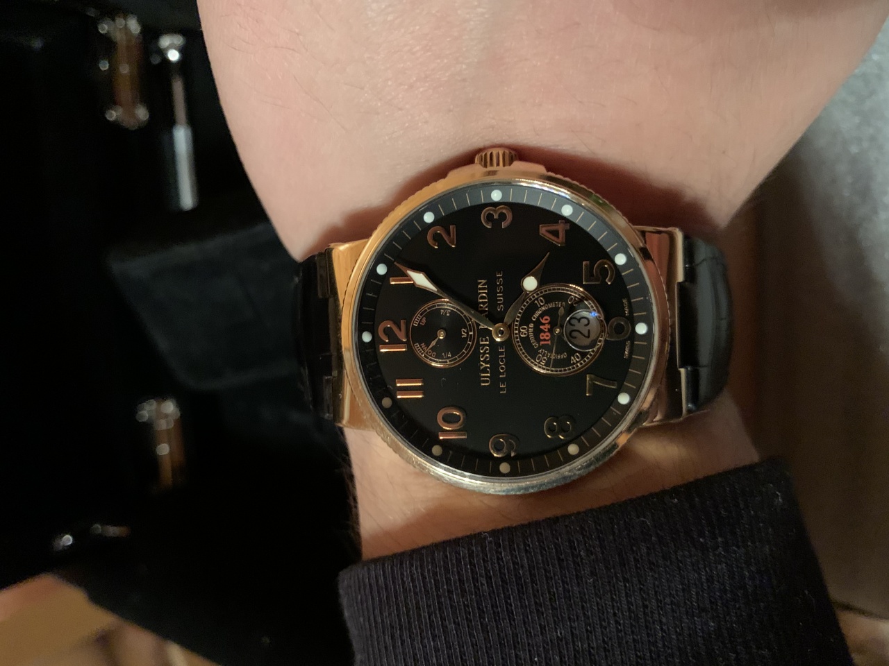 Шикарный золотой Ulysse Nardin 266-66 чёрного цвета на аллигаторе.