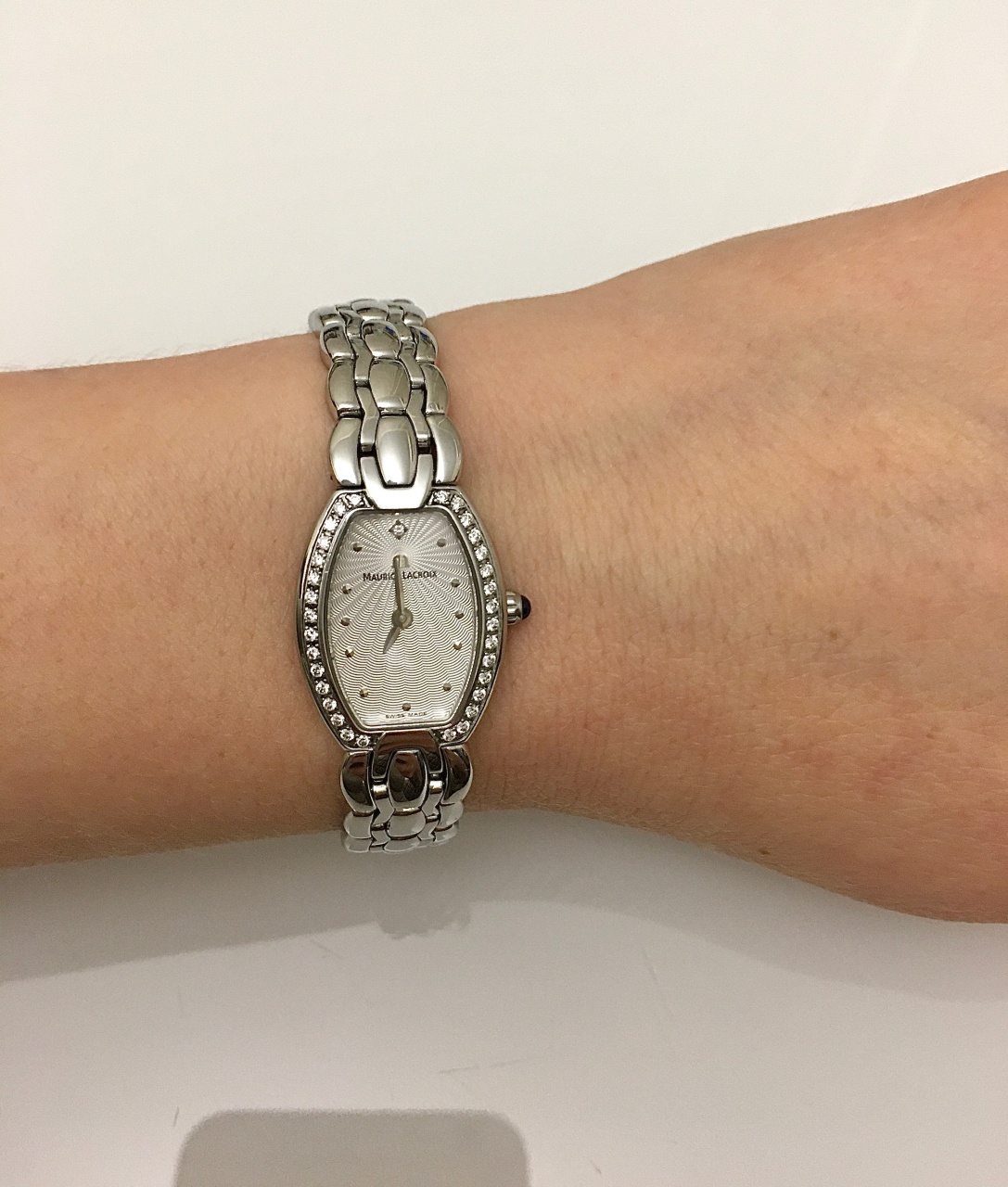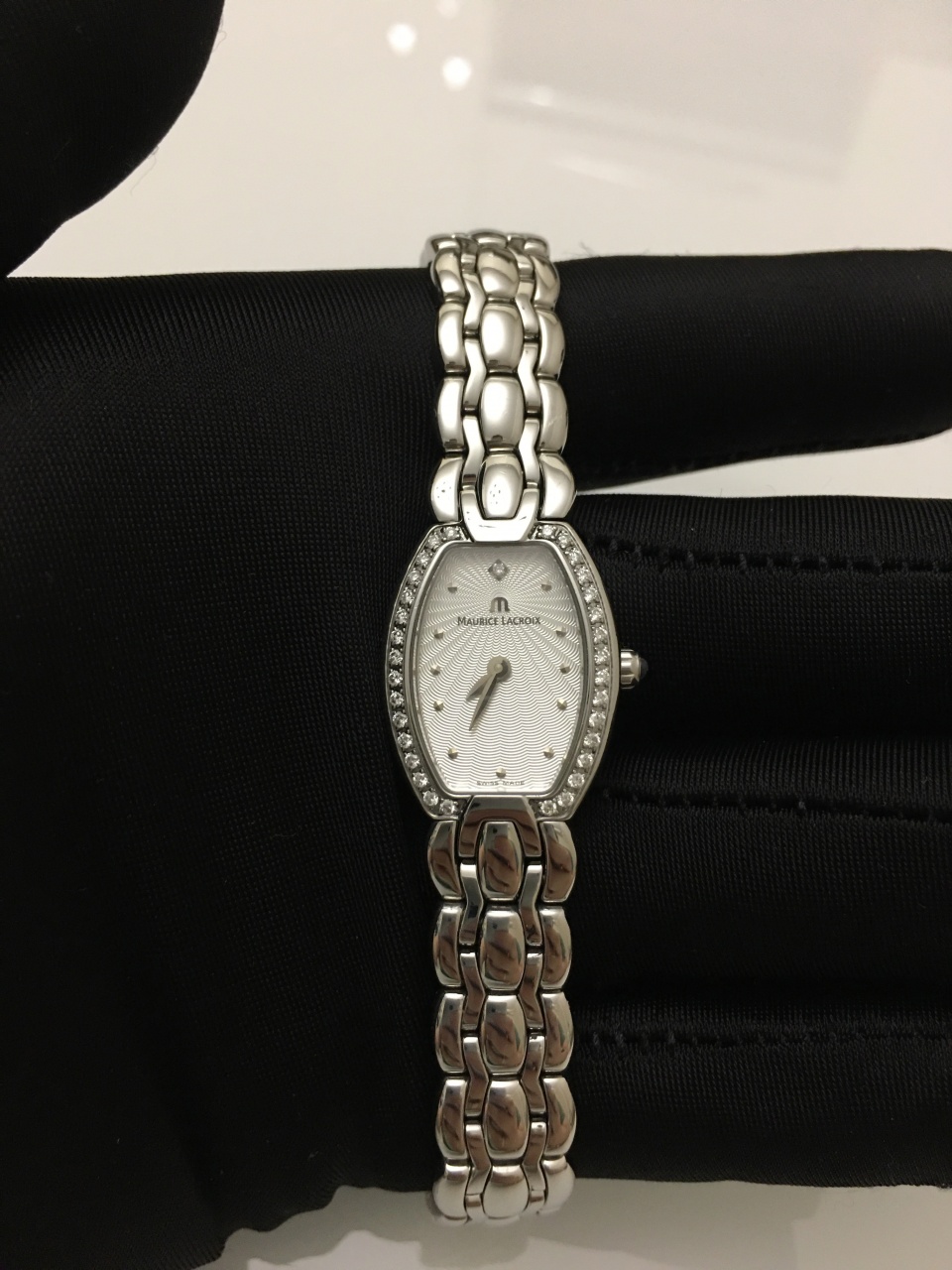 Maurice Lacroix SE4012-SD502-150 с 29 бриллиантами (28 по окружности корпуса и 1 бриллиант на отметке часов 12). Сапфир в заводной головке