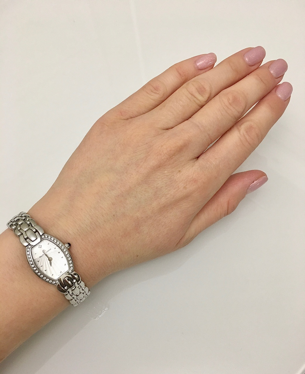 Камень-вставка: 28 бриллиантов, Top Wesselton (прозрачные), VS (чистота 2), огранка 57 граней, 0.26 карат, 1 бриллиант на циферблате,