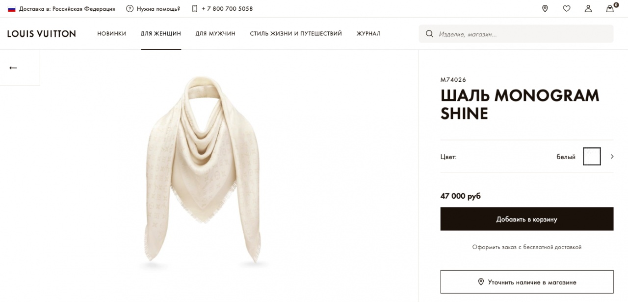 Стоимость в Louis Vuitton: 47.000 руб.