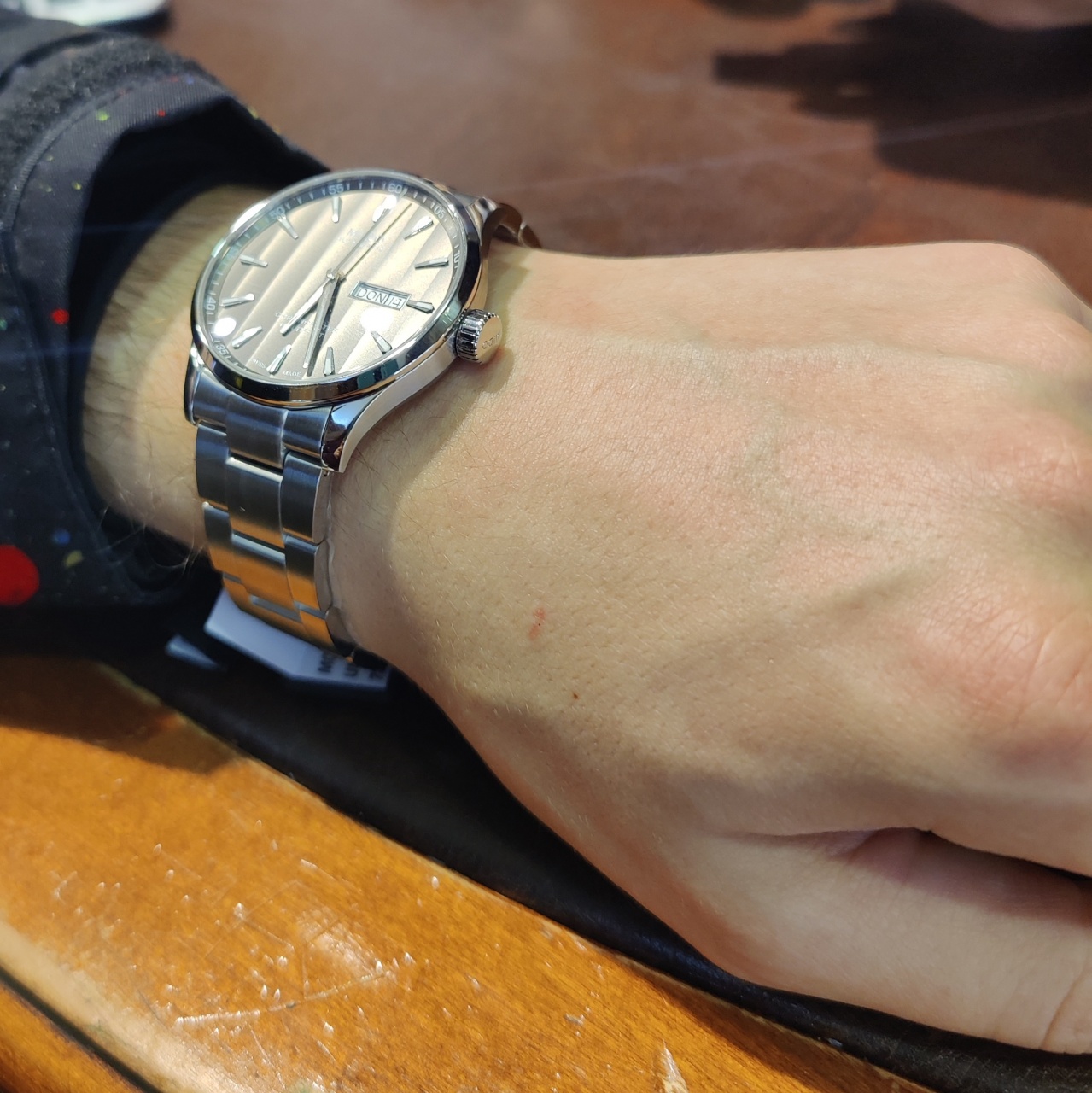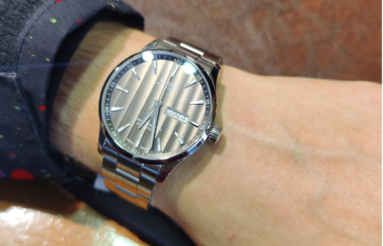 Нравится идея с женевскими волнами, но после примерки в магазине есть небольшие сомнения по поводу поведения этих волн. Понятно, что в магазине прожектора, но смотреть на циферблат оказалось сложно, много бликов.