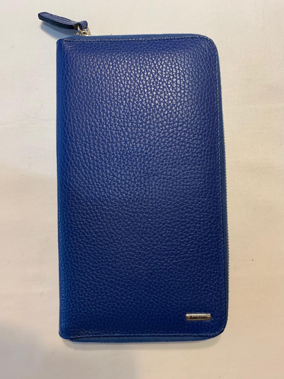 Продается новое кожаное портмоне итальянского бренда RAVAZZOLO превосходного исполнения, синего цвета, зерненная телячья кожа, логотип , одиннадцать слотов для карт, пять отделений для купюр, паспорта, водительских прав и др. документов и карман для монет, застегивающийся на молнию, по контуру портмоне застегивается на молнию, в комплект входит пыльник, все бирки прилагаются , гарантированный 100 % оригинал, размер: глубина 3,0 cm, высота 12 cm, длина 22 cm, производство Италия
